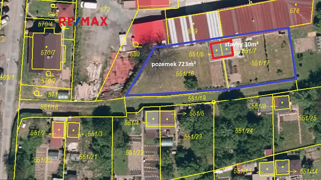 Zahrada je pečlivě udržovaná, s okrasnými keři a ovocnými stromy, dále umístěnou kopanou studnou a retenčními nádržemi na dešťovou vodu. Přístup k objektu je po zpevněné komunikaci ve vlastnictví obce, část po nezpevněné komunikaci ve vlastnictví státu. Součástí prodeje je i spoluvlastnický podíl na části oploceného pozemku, parc.č. 551/19.