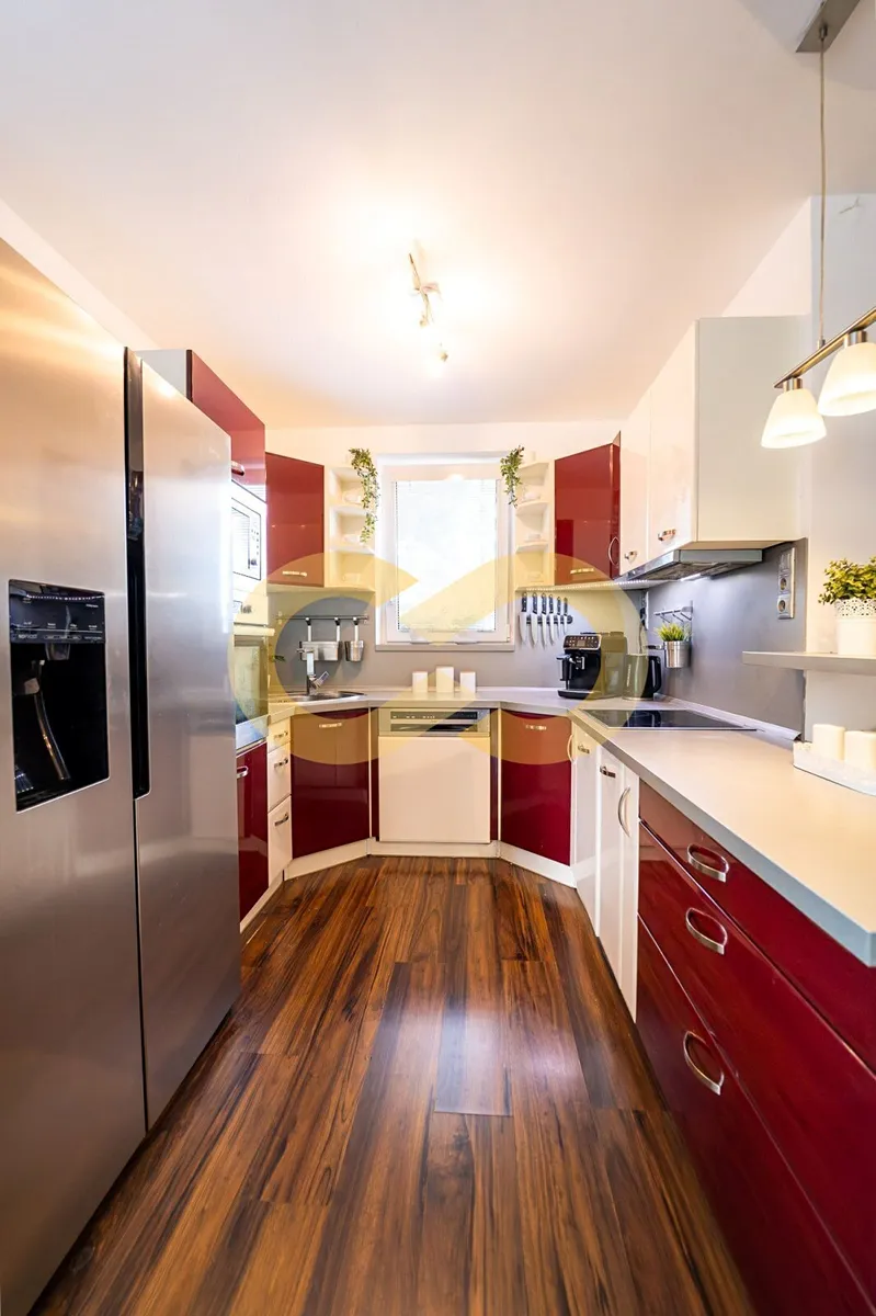 Prostorný obývák odděluje od kuchyně ostrůvek – při vaření budete mít přehled, ale taky soukromí. Zimní večery vám zpříjemní krb a obytný prostor neuvěřitelně zvětší zimní zahrada.