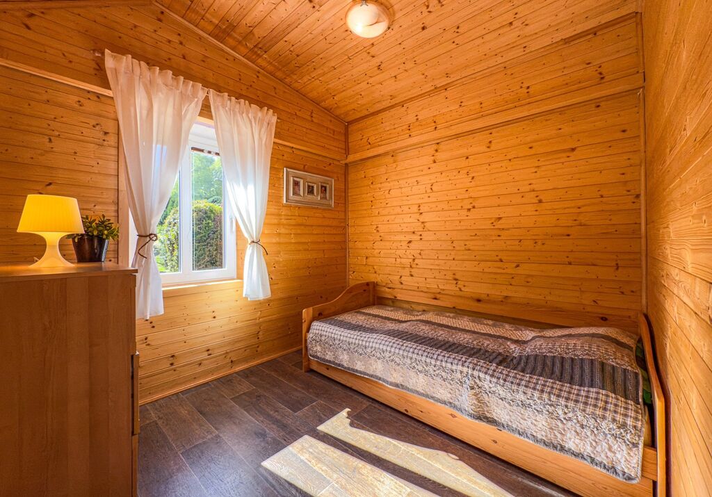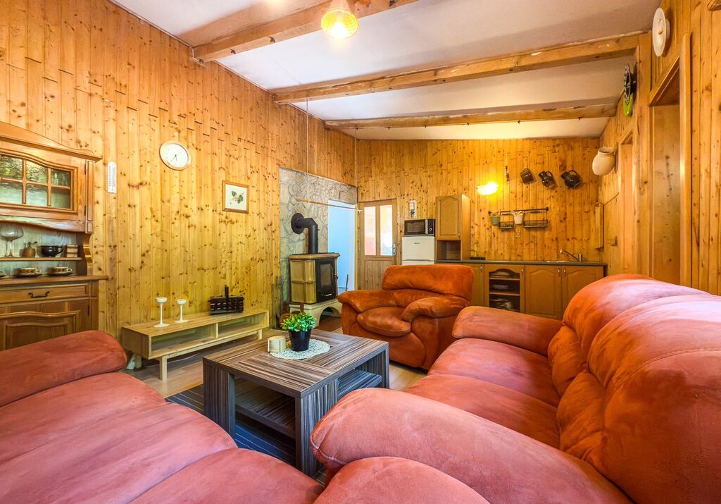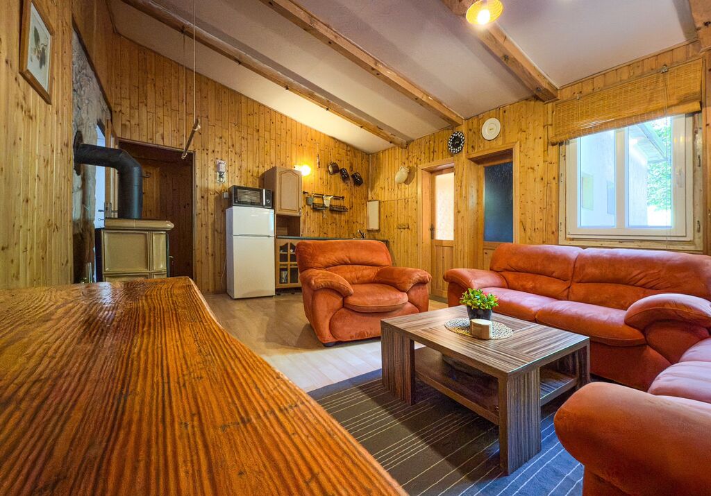 Dispozičně je chata řešena jako předsíň, hlavní obytný prostor, dvě ložnice a koupelna se sprchou a toaletou. Interiér je obložen dřevem, což vytváří příjemnou a útulnou atmosféru. Součástí prodeje je veškeré zařízení a vybavení, díky čemuž je možné chatu ihned využívat.