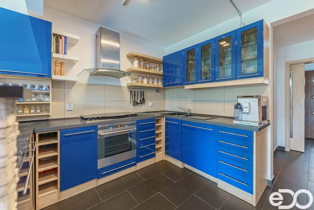 • velkou kuchyní vybavenou značkovými spotřebiči a velkou varnou plochou s vestavěným grilem