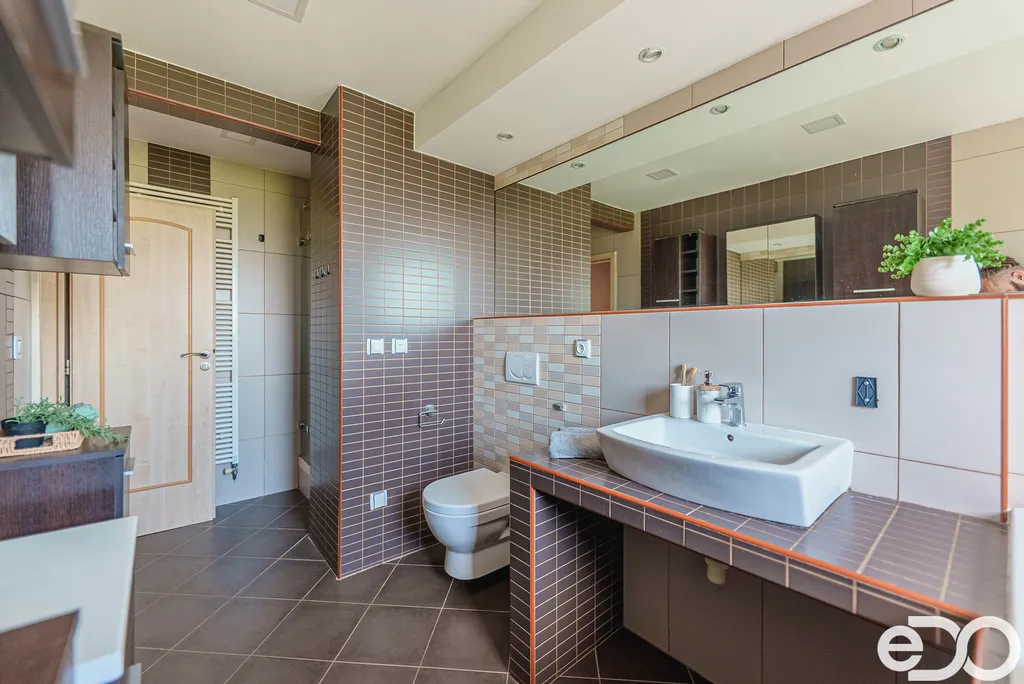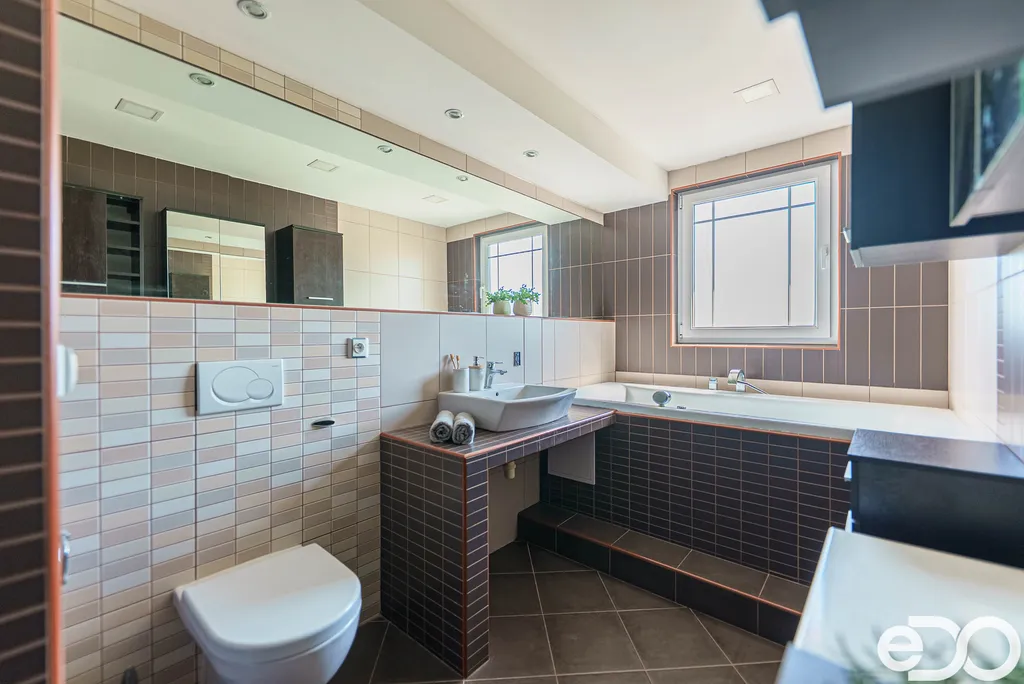 • třemi koupelnami s WC, sprchovým koutem, a dokonce i vířivou vanou,