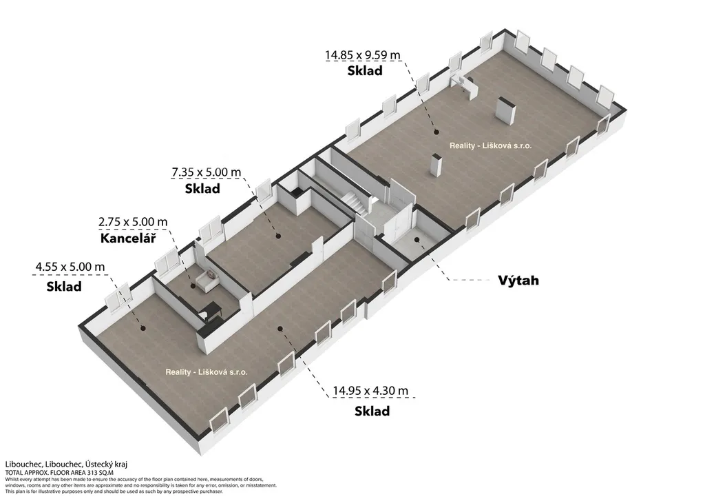 K dispozici je zde průmyslový výtah i vysokozdvižný vozík.