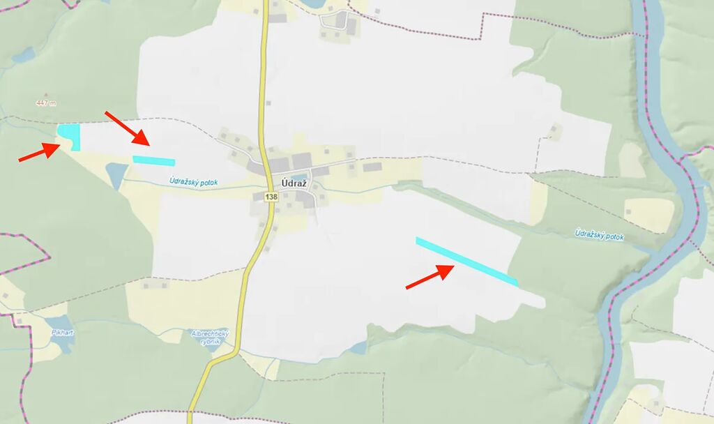 Celková výměra k prodeji v k. ú. Údraž: 21 592 m²