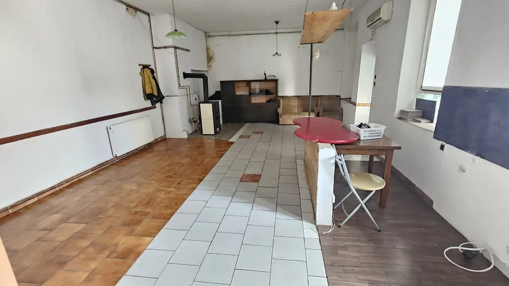 V přízemí se nachází prostorná místnost, která byla dříve využívána jako restaurace a je takto i zkolaudovaná. K dispozici je zde zázemí s toaletami, sprchovým koutem a kamny a v zadní části se nachází prostor bývalé kuchyně.