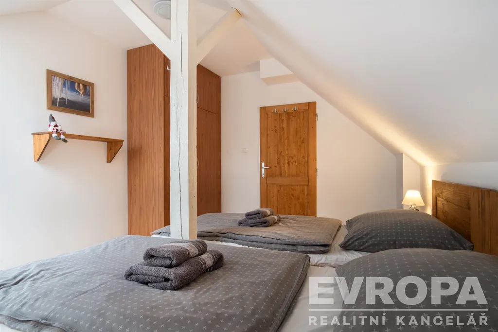 Apartmán se nachází v podkroví apartmánového komplexu a je plně vybaven, což zajišťuje maximální komfort pro všechny ubytované. Vytápění je zajištěno elektrickým kotlem, přičemž v apartmánu je nainstalován termostat pro řízení teploty a regulovatelné termo hlavice na radiátorech v každém pokoji. Dům, ve kterém se apartmán nachází, byl v roce 2020 celkově zrekonstruován včetně vybudování tohoto prostorného apartmánu.