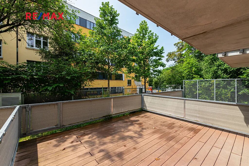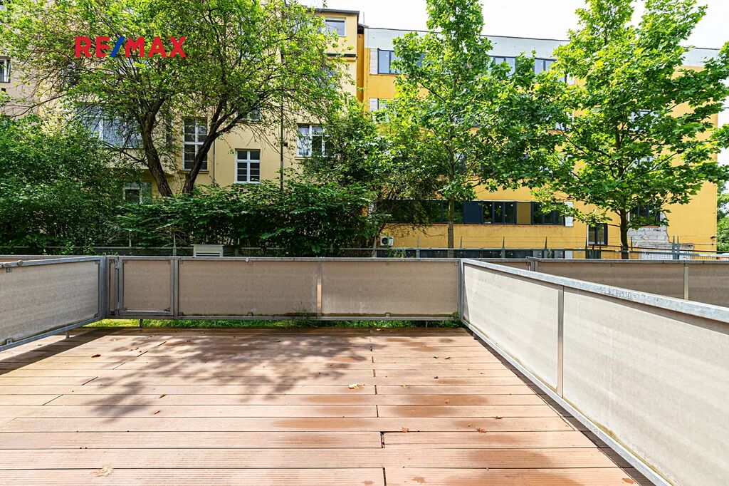 Okna a terasa jsou směrovány na jižní stranu do klidného vnitrobloku. Je zde tedy příjemné prostředí pro relaxaci.