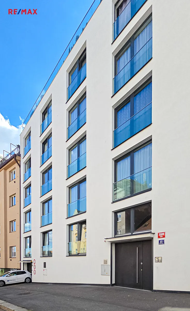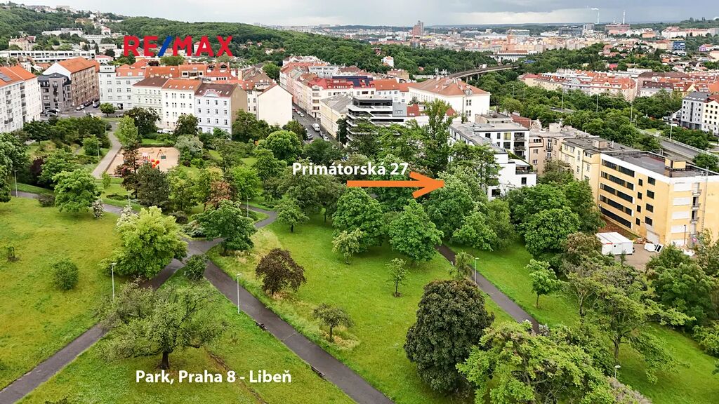 Přímo za domem je rozlehlý park Pod Korábem, skvělé spojení do centra Prahy díky tramvajové trati.