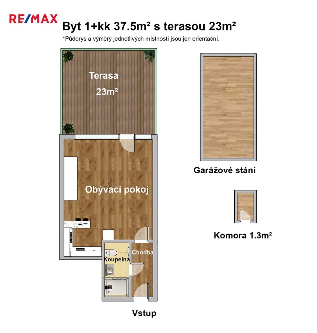 Nabízím k dlouhodobému pronájmu velmi hezký světlý a prostorný byt s dispozicí 1+kk, který se nachází v 1.nadzemním podlaží novostavby bytového domu v žádané lokalitě pražské Libně. Byt má výměru 37,5 m2, náleží k němu terasa s výměrou 23 m2, komora na chodbě a parkovací stání v 1.podzemním podlaží.