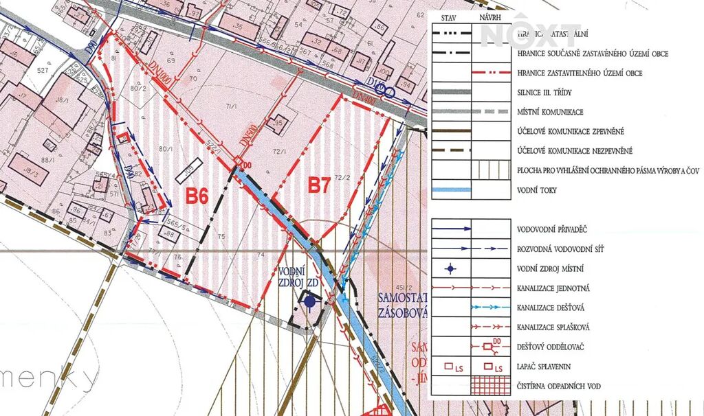 Všechny inženýrské sítě – vodovod, plynovod, splašková i dešťová kanalizace – jsou na hranici pozemku; přístup z obecní komunikace. Územní Plán umožňuje výstavbu rodinného domu. Dostupnost: Litovel cca 10 km (≈12 min), Olomouc cca 18–20 km (≈20–25 min). Občanská vybavenost v Litovli, širší nabídka v Olomouci. Napojení na sítě a případné poplatky dle podmínek správců.