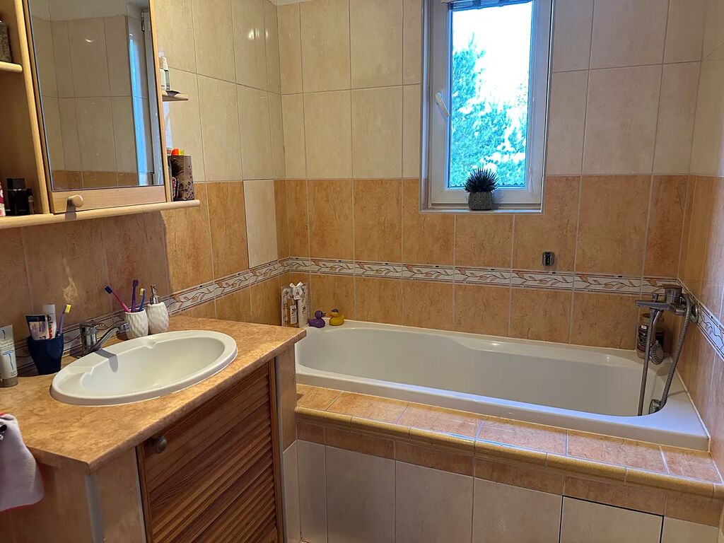 Rádi bychom Vám představili tento rodinný dům k pronájmu ul. Lidická 592, Buštěhrad o užitné ploše 140m2. Dispozice domu a jeho umístění nabízí soukromí části zahrady, kde se nachází altán s krbem a posezením, dům je přízemní s možností z kuchyně a ložnice vyjít přímo ven do zahrady. Dispozičně je dům řešen jako 3+1 s možností rozdělit jeden pokoj na dva identické pokoje (například pro děti - tedy 4kk). Dále dům disponuje prádelnou s pračkou a prostorem na uskladnění prádla případně sušení či žehlení, technickou místostí, menším sklepem a dvěma WC. Kuchyň je vybavena lednicí s mrazákem, myčkou nádobí, sporákem a elektrickou troubou. Koupelna je vybavena sprchovým koutem i vanou.