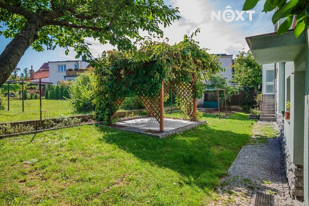 Dům obklopuje udržovaná zahrada doplněná o samostatně stojící pergolu, jež nabízí příjemné zázemí pro relaxaci a letní posezení.