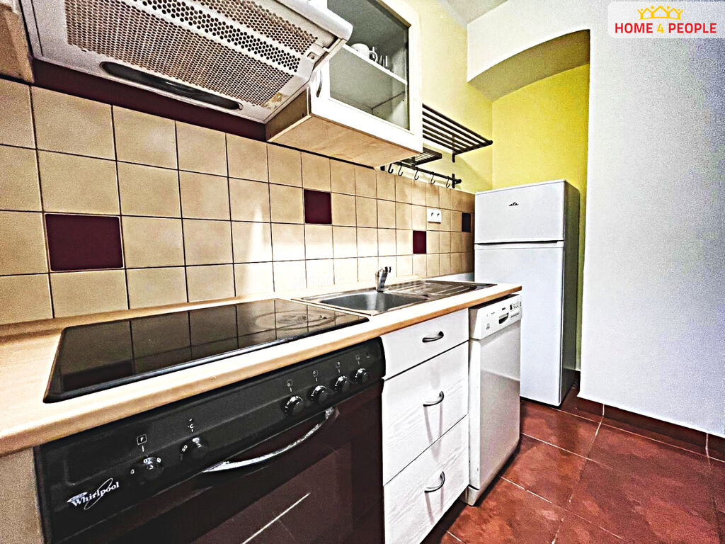 Kuchyňská linka je vybavena veškerými spotřebiči vč. myčky. Koupelna s vanou, umyvadlem a místem na pračku. WC je samostatné.
