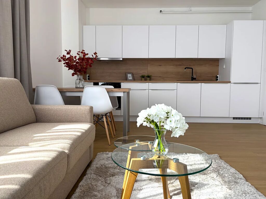 Nabízíme k dlouhodobému užívaní moderně a stylově vybavený apartmán o dispozici 3+kk v projektu AFI Home Kolbenova. Apartmán je plně vybavený, nábytek na míru nabízí dostatek úložného prostoru.