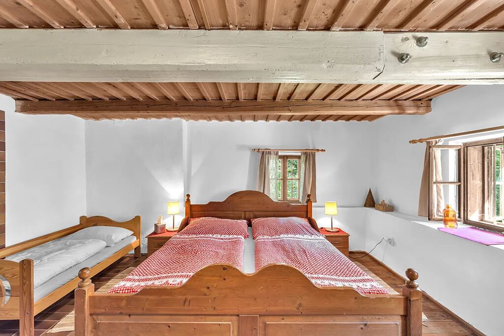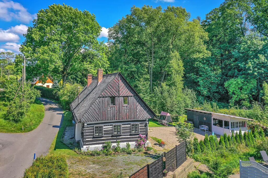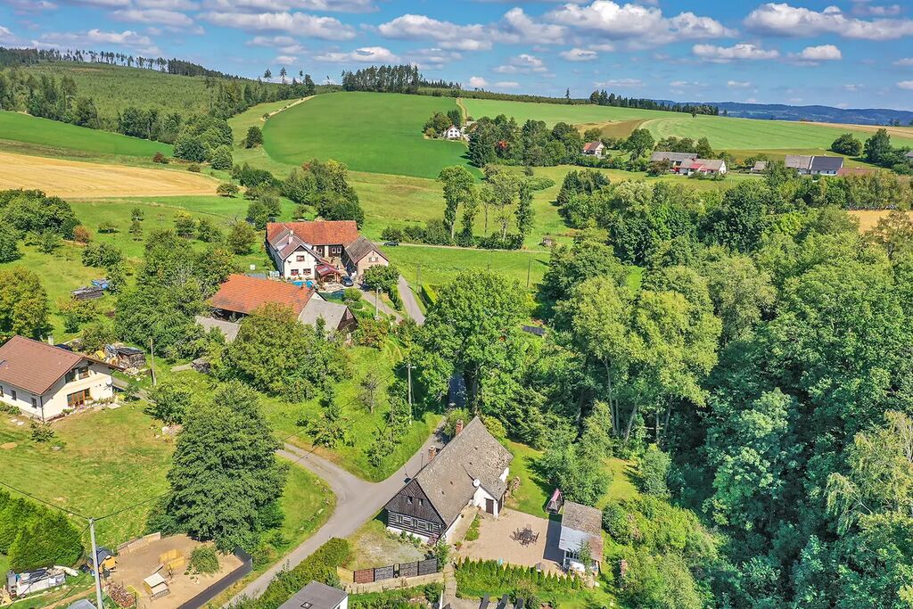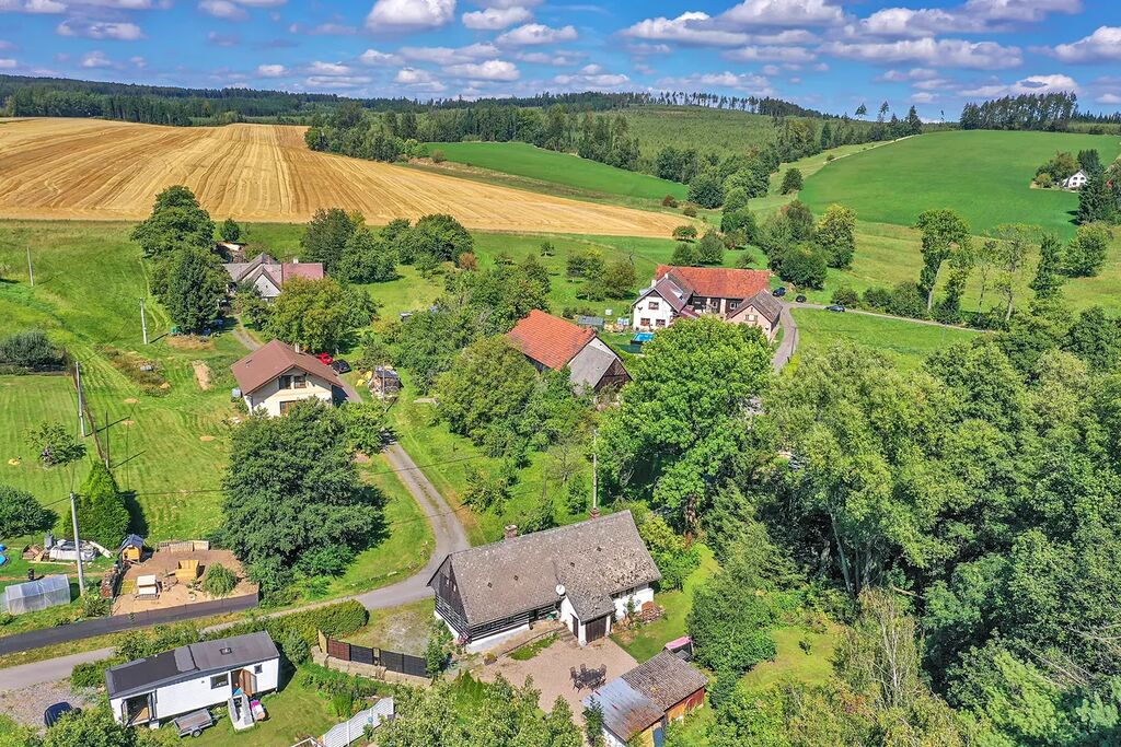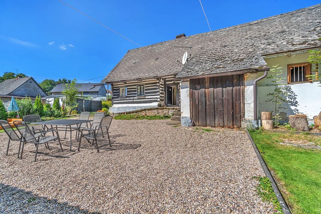 Velikou devizou této nemovitosti je její lokalita. Roubenka je na polosamotě, obklopená vzrostlými stromy. Na hranici pozemku teče potůček, jehož uklidňující ševelení si můžete vychutnávat každý den, protože ani v zimě nezamrzá. Na zápraží i kamenném nádvoříčku je dostatek denního světla, a kdyby toho slunce bylo přece jen plno, můžete se ukrýt do zastřešeného altánu, který je vhodný i k pořádání rodinných oslav.