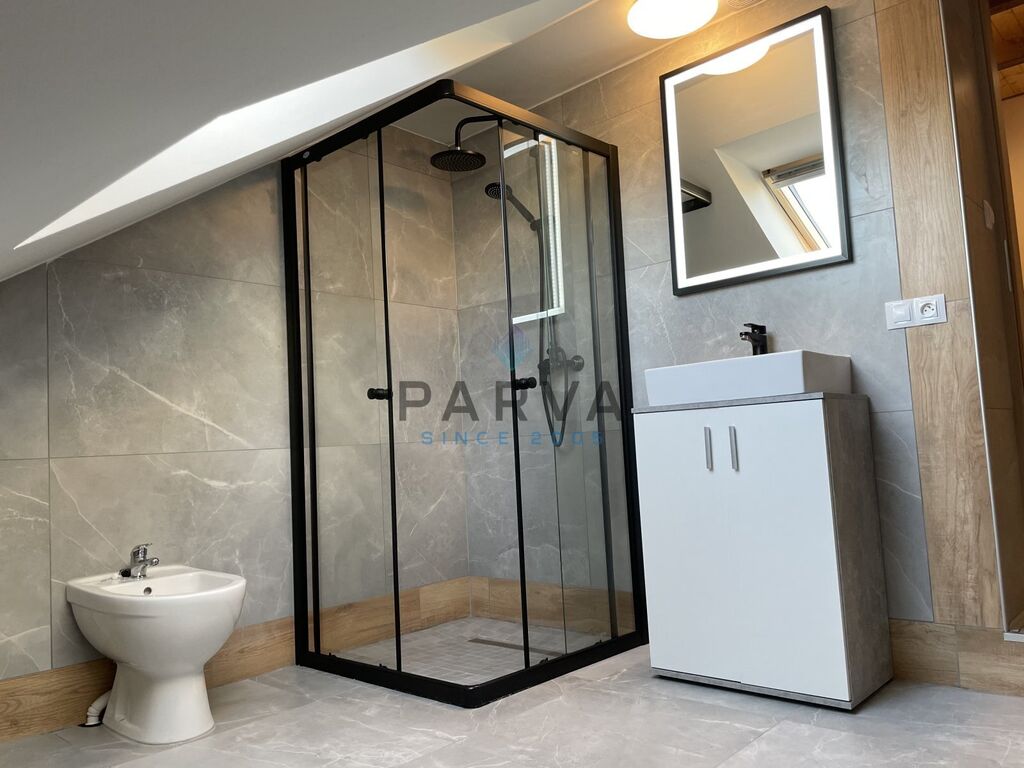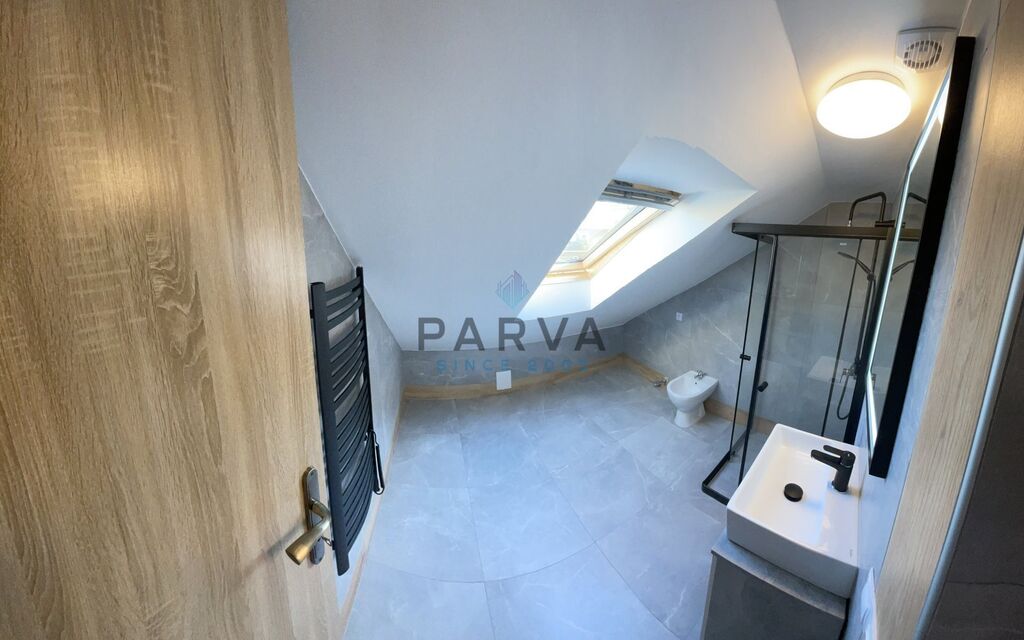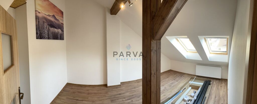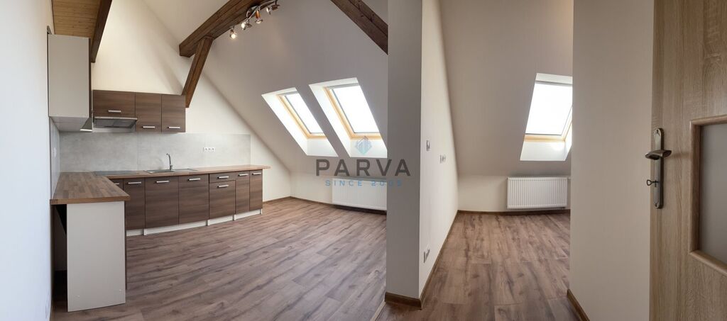 Dispozičně je řešen velmi prakticky. Ze vstupní chodby se vchází do obývacího pokoje s kuchyňským koutem a do dvou neprůchozích ložnic, což ocení například spolubydlící nebo pár, který potřebuje pracovnu. Součástí bytu je koupelna se sprchovým koutem, samostatná toaleta a také technická místnost. Velkým lákadlem je mezonetové patro s oknem, malým výklopným balkonem a ochozem nad částí obývacího pokoje, které nabízí originální prostor k odpočinku nebo práci. Přestože se byt nachází v rušnější lokalitě, je díky kvalitní konstrukci perfektně odhlučněný. Vytápění a ohřev vody zajišťuje moderní tepelné čerpadlo značky IVT, což je zárukou úsporného a komfortního bydlení.
