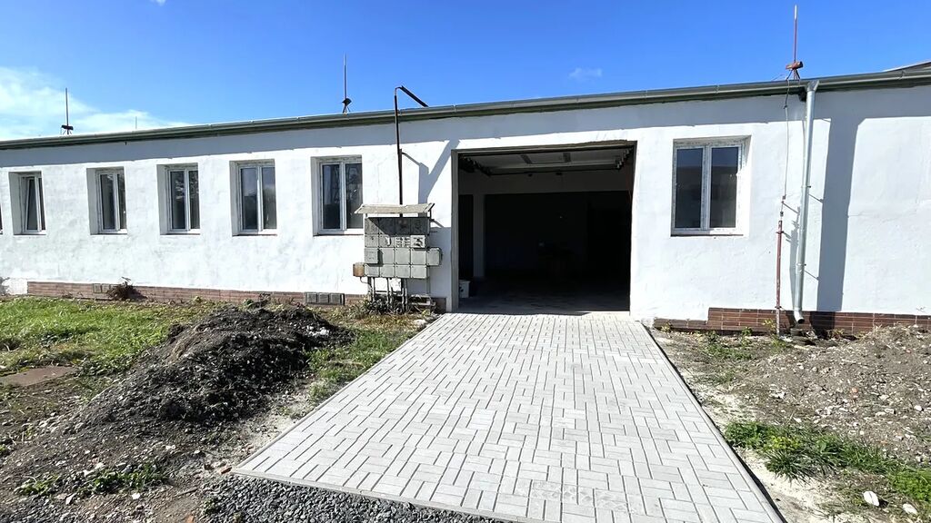 ◉ 202 m2 – nově připravovaný a stavebně upravený skladově výrobní prostor – 2x místnost, samostatný, zděný, vlastní vjezdová vrata 3x3,2m, 2x WC, příprava na kuchyňku, vlastní zpevněný vjezd do prostor, možné jeho variabilní využití.
