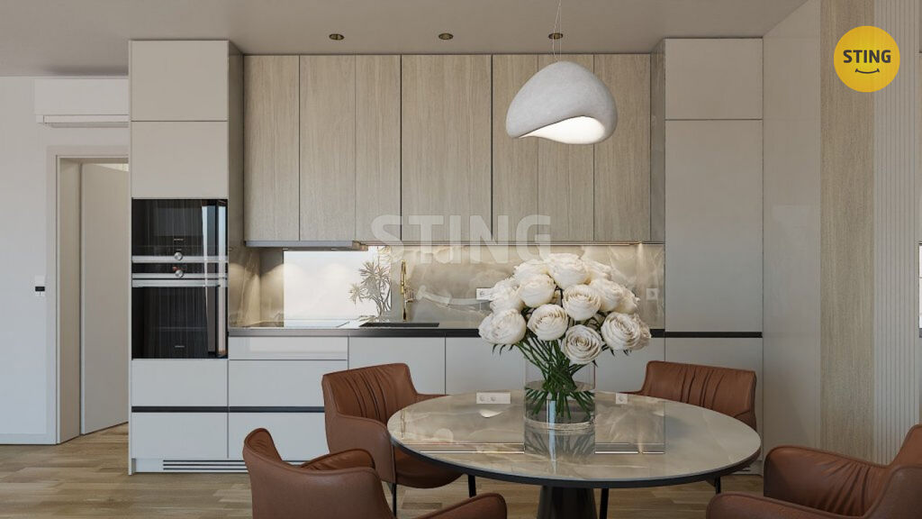 Byt nabízí moderní dispoziční řešení a je vybaven kvalitními materiály ve vysokém standardu, který je již zahrnut v ceně – např. klimatizace, venkovní žaluzie, podlahové vytápění a další. Interiér je navržen s důrazem na praktické, pohodlné a stylové bydlení.
