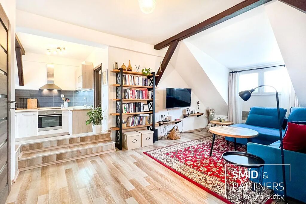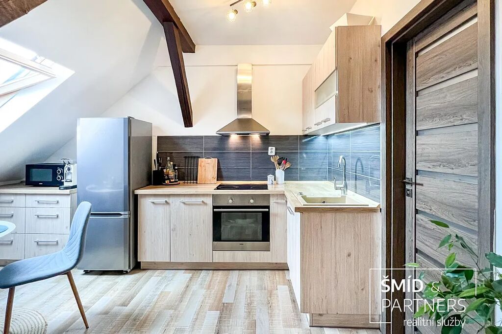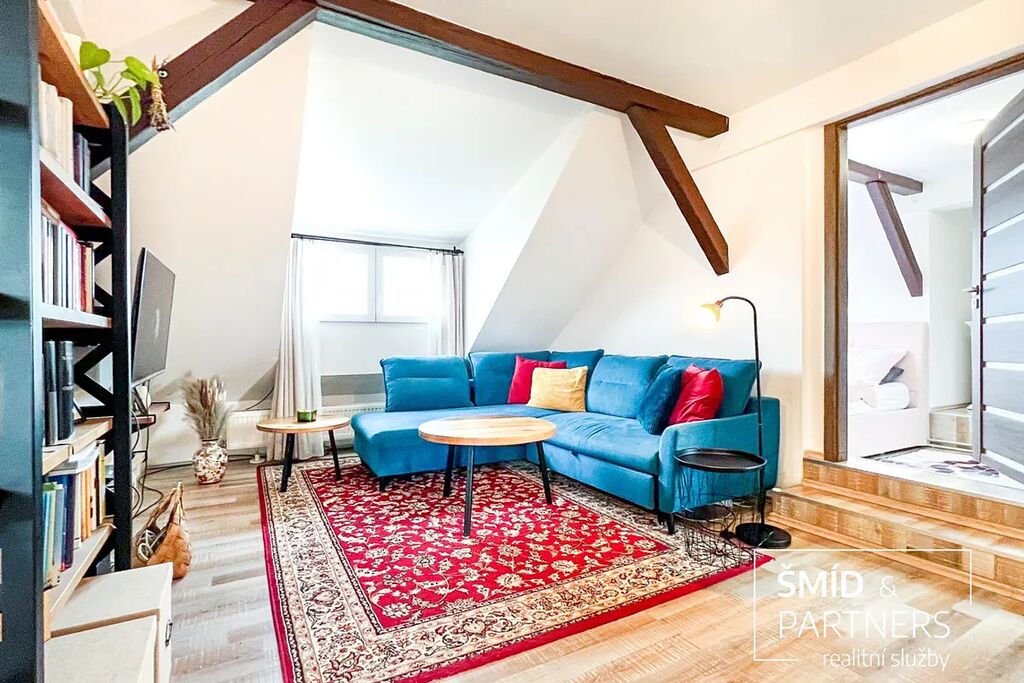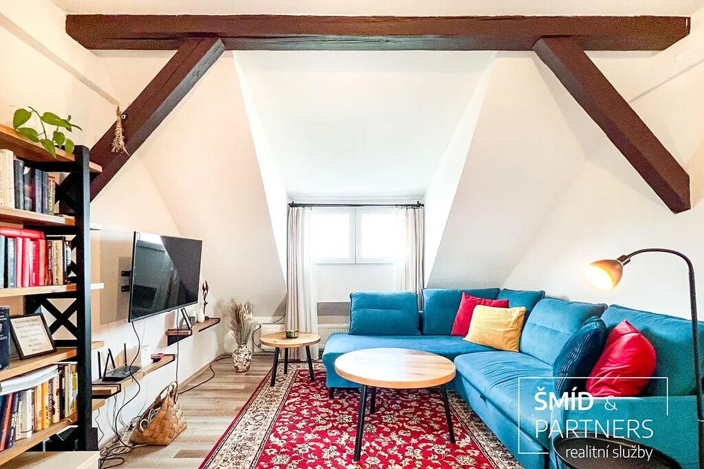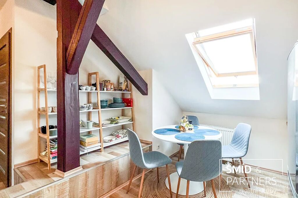 Bytová jednotka byla zkolaudována v roce 2006 vybudováním z původního půdního prostoru, v roce 2018 prošla kompletní rekonstrukcí interiéru při které byla nejen nově upravena dispozice do stávající podoby, nově byly taženy rozvody elektřiny, vody, odpady, ústřední topení, nové omítky, štuky, nově byla obložena koupelna s WC keramickým obkladem a dlažbou, usazena nová sanita, položena laminátová plovoucí podlaha, nové dveře, obložky, instalována nová kuchyňská linka s elektrickou troubou, sklokeramickou varnou deskou, digestoří a myčkou. Vytápění bytu zajišťuje elektrokotel, ohřev teplé vody bojler, které jsou umístěny v technickém zázemí bytu. V interiéru bytu zůstaly přiznány střešní trámy, které dodávají prostoru šarm, zároveň světlá výška bytu je velmi příjemná a nelimituje při jeho užívání.