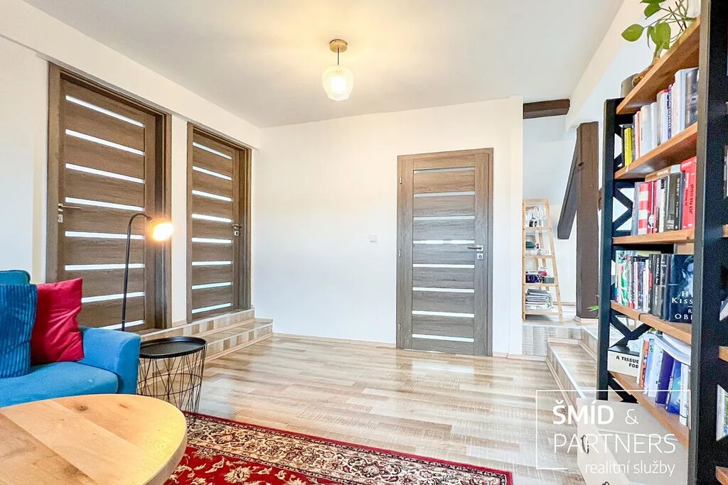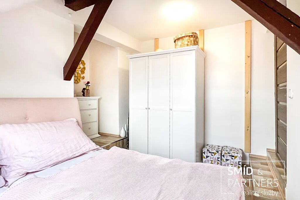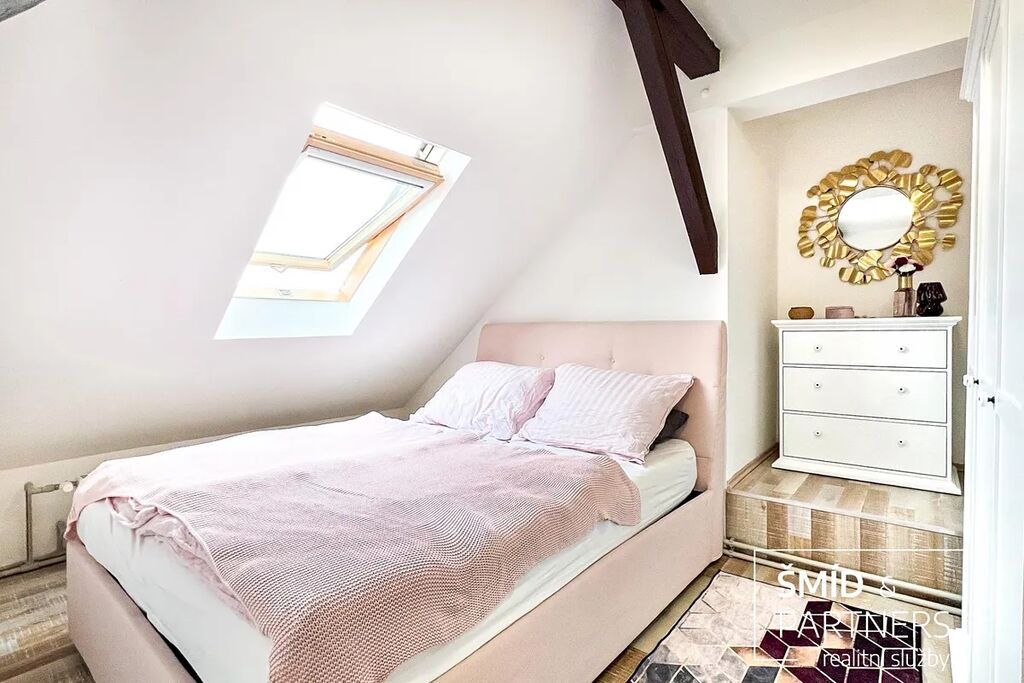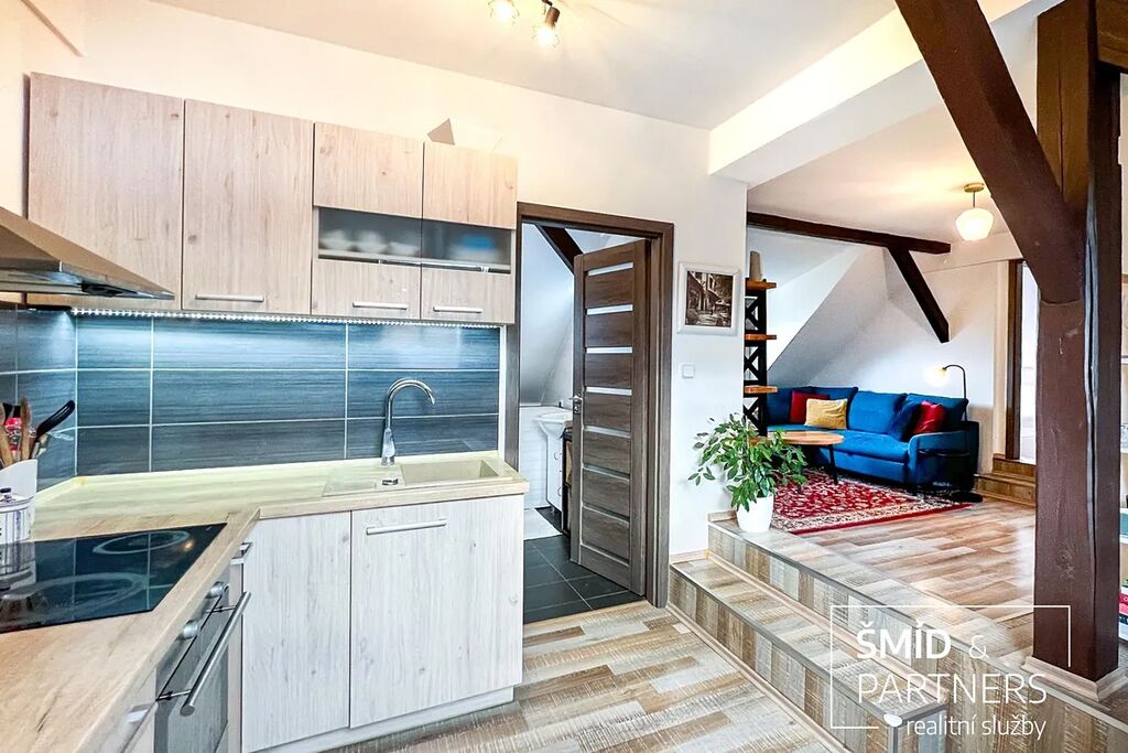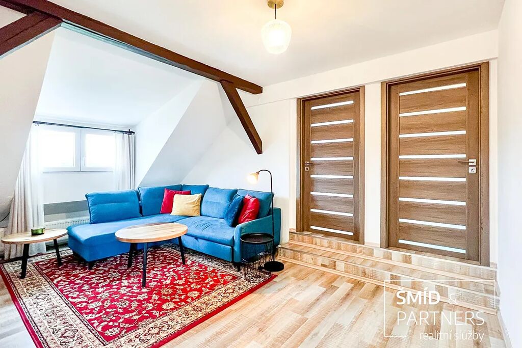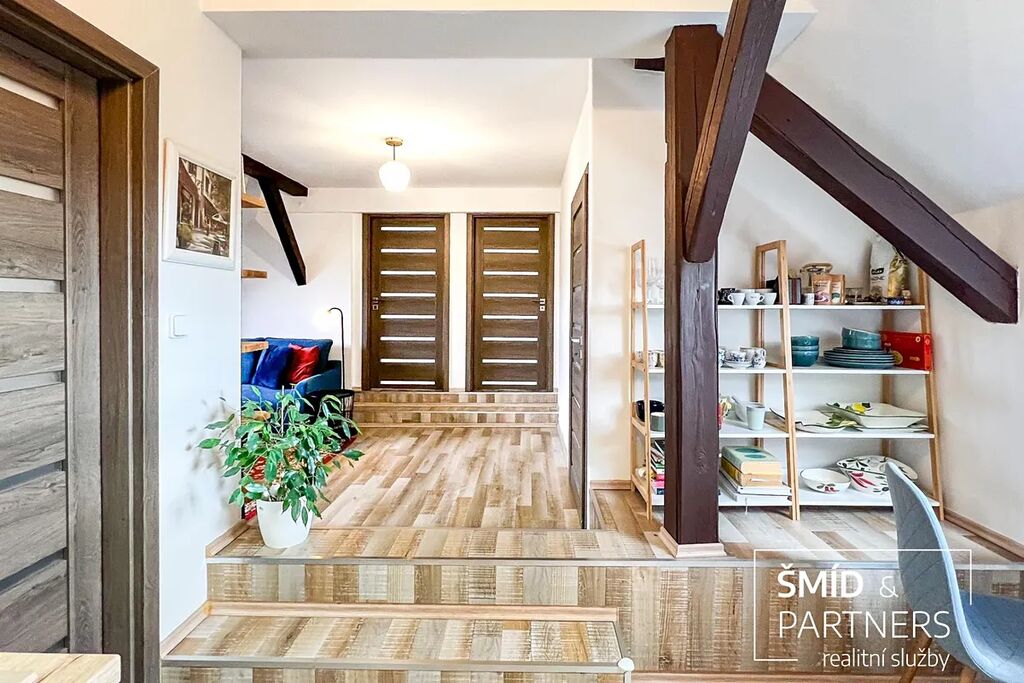 Bytová jednotka byla zkolaudována v roce 2006 vybudováním z původního půdního prostoru, v roce 2018 prošla kompletní rekonstrukcí interiéru při které byla nejen nově upravena dispozice do stávající podoby, nově byly taženy rozvody elektřiny, vody, odpady, ústřední topení, nové omítky, štuky, nově byla obložena koupelna s WC keramickým obkladem a dlažbou, usazena nová sanita, položena laminátová plovoucí podlaha, nové dveře, obložky, instalována nová kuchyňská linka s elektrickou troubou, sklokeramickou varnou deskou, digestoří a myčkou. Vytápění bytu zajišťuje elektrokotel, ohřev teplé vody bojler, které jsou umístěny v technickém zázemí bytu. V interiéru bytu zůstaly přiznány střešní trámy, které dodávají prostoru šarm, zároveň světlá výška bytu je velmi příjemná a nelimituje při jeho užívání.