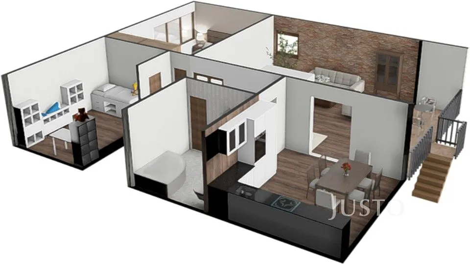 Podkroví skýtá vícero možností. Otevřená galerie (46,5 m²) nad obývacím pokojem může jako doposud sloužit k relaxaci nebo ji lze elegantně upravit na plnohodnotný obytný prostor. Na tento prostor navazuje pracovna (29,4 m²) a pokoj pro hosty (13,2 m²).
