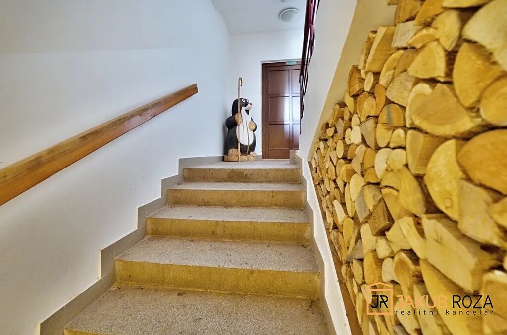 Dále je k dispozici vedlejší budova o výměře užitné plochy 95 m2, užívaná jako sociální zařízení, sprchy, garáž a lyžárna.