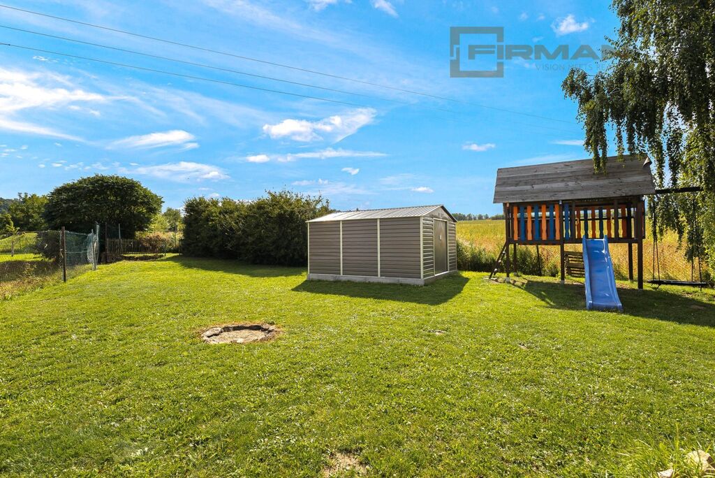 Pozemek o velikosti 738 m² poskytuje prostor pro dětské hry, zahradní posezení i budoucí úpravy. Součástí je i kůlna, kterou lze přetvořit třeba na garáž.