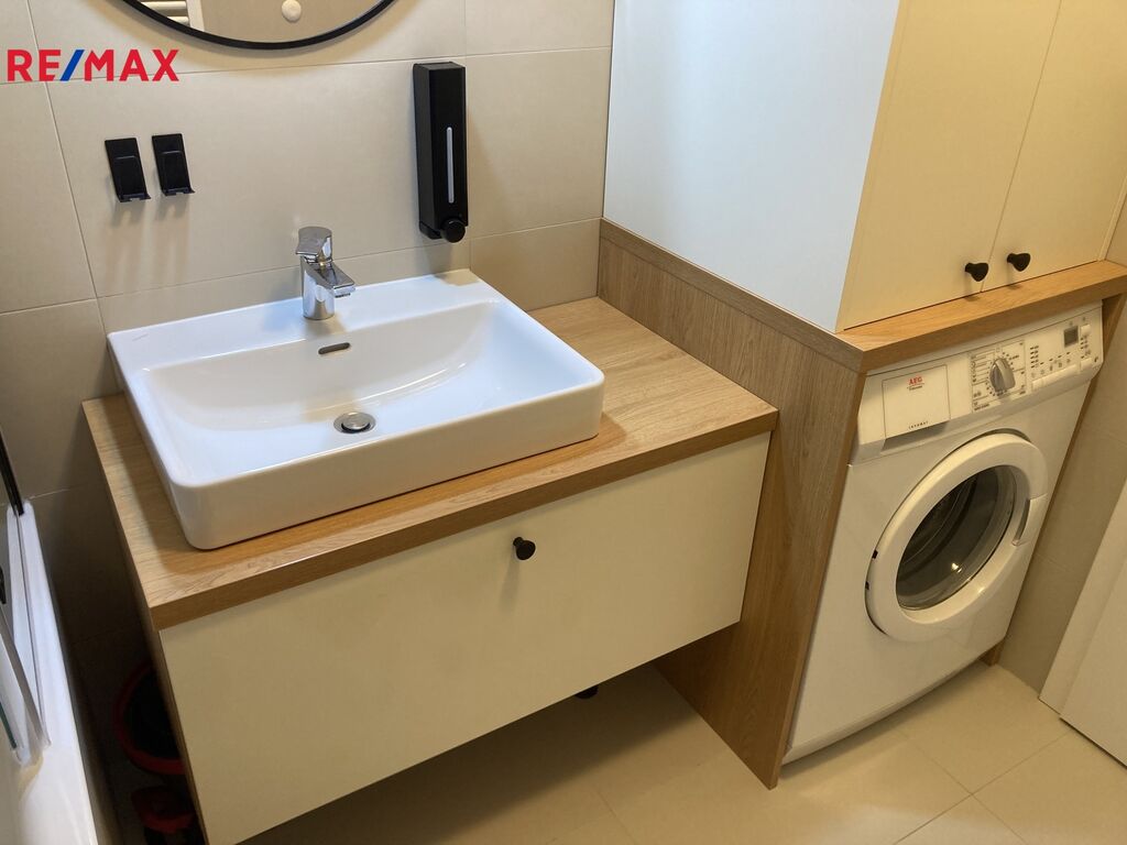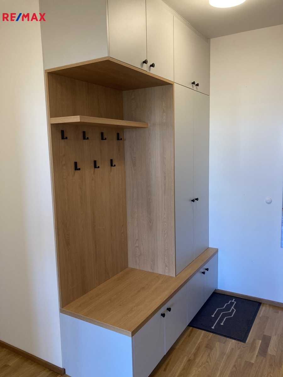 Kuchyňský kout je vybaven kuchyňskou linkou s veškerými spotřebiči (lednice, mrazák, myčka, mikrovlnná trouba, varná deska, digestoř, dřez s baterií), pultem a jídelním stolem. V chodbě jsou vestavěné skříně. Součástí koupelny je pračka a skříňky. Mobilní nábytek v jídelně (židle), obýváku (gauč) a kompletní vybavení ložnice, lze zachovat a odkoupit od současné nájemnice, která byt obývala předchozí 3 roky a byla jedinou obyvatelkou od kolaudace.