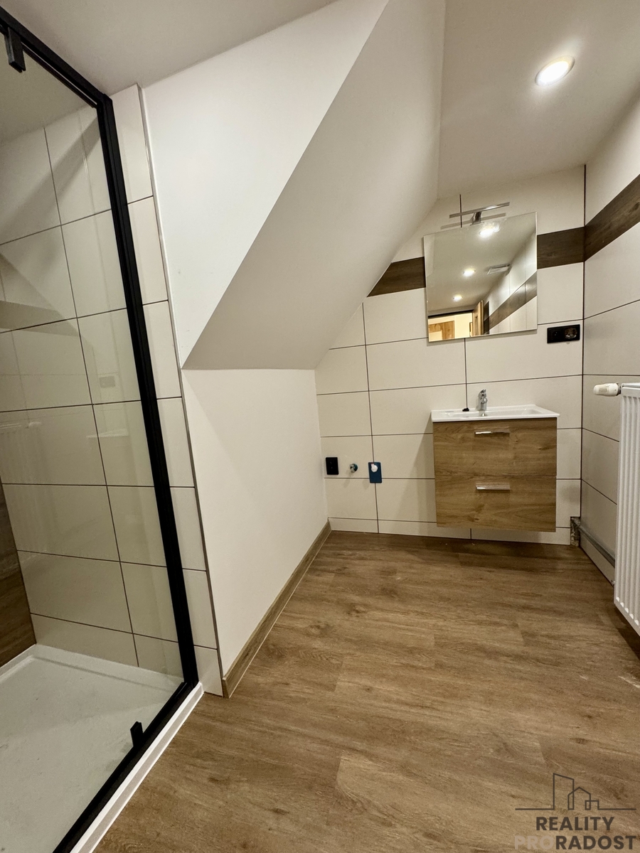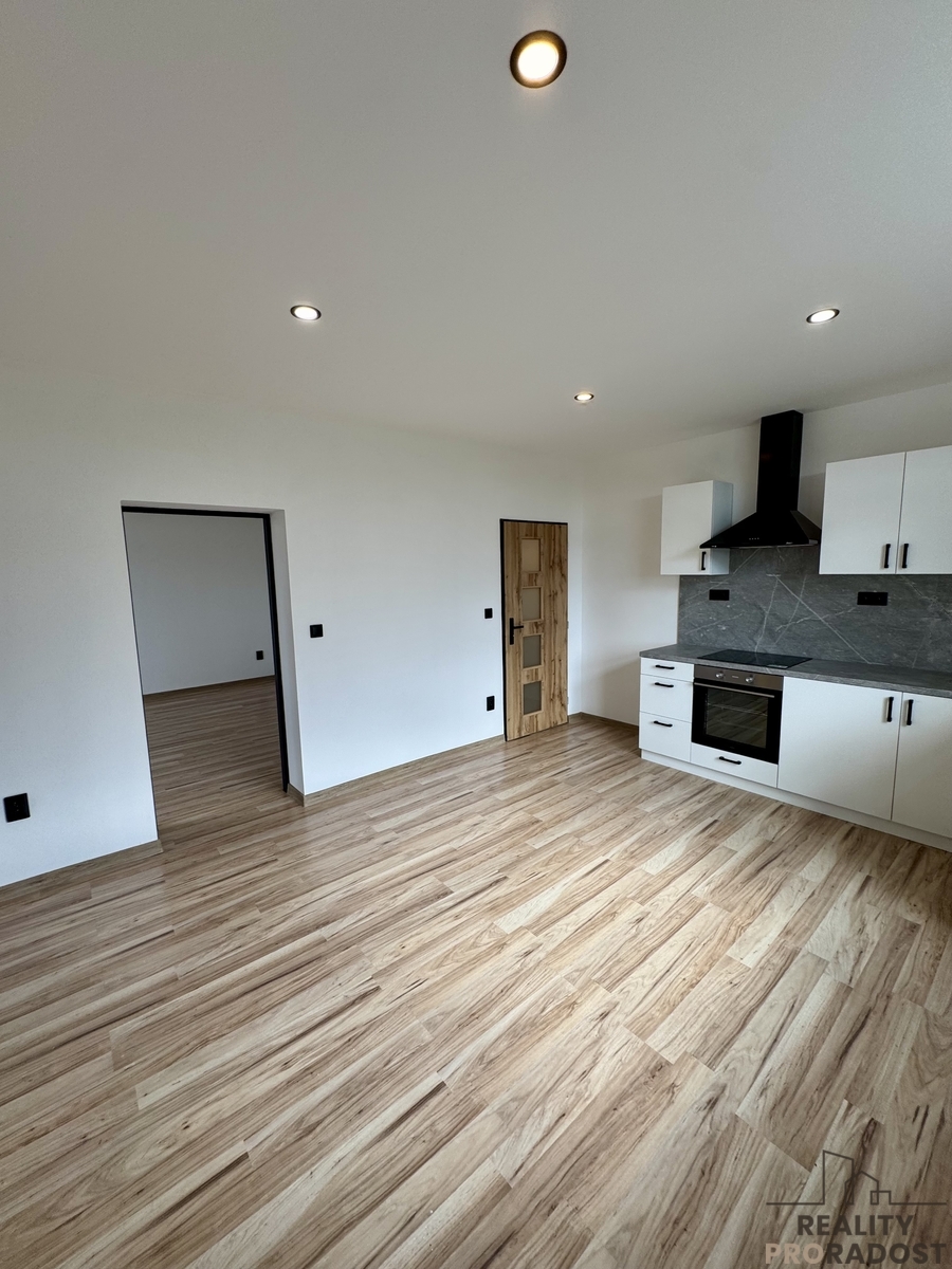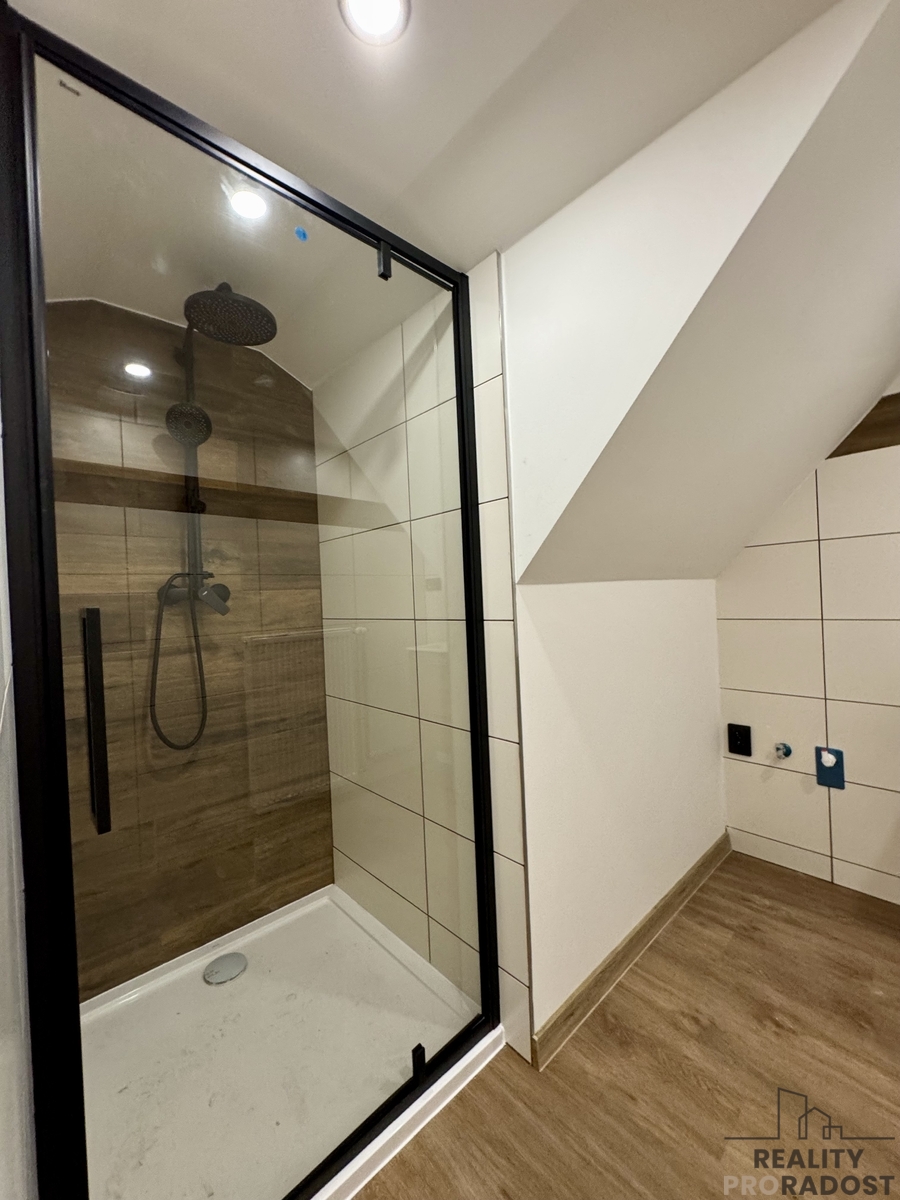 Parametry bytu jsou - 2+kk, ložnice, kuchyň s velkým prostorem, koupelna a WC. Je tam ještě jedna místnůstka, která se dá využit jako špajz, odkládací prostor na čistící prostředky, vysavač atd. Nebo třeba malá herna. A tohle všechno tvoří krásných 54 m² .