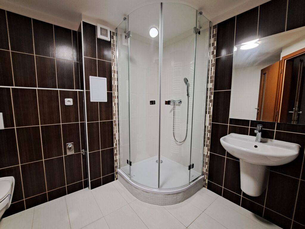 Ve zděné koupelně je nový sprchový kout, přípojka na pračku. Nové vinylové podlahy, plastová okna, žaluzie. Osvětlovací tělesa budou doplněna.