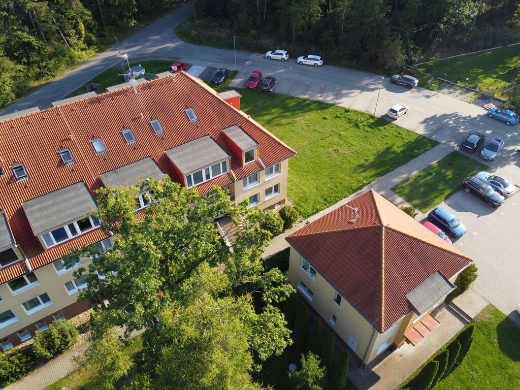 Před objektem je udržované prostranství s trávníkem, malým dětským hřištěm, posezením pro grilování apod. pod vzrostlými stromy. Parkování na přilehlém parkovišti. Klidné místo, bus 300 m.