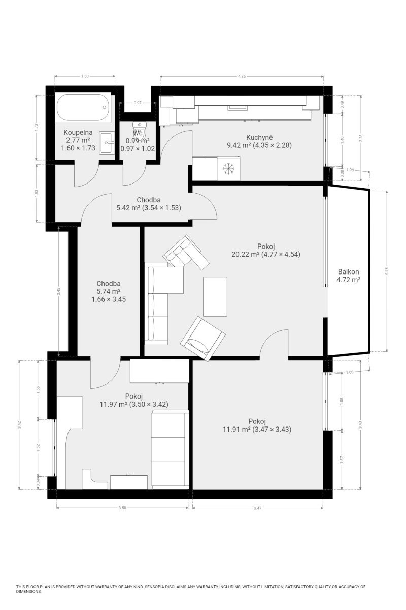 Součástí bytu je kuchyňská linka vybavená elektrickou troubou, varnou deskou a lednicí. V ložnicích se nachází postele a skříně s dostatkem úložného prostoru. V koupelně je vana, umyvadlo a pračka, toaleta je samostatně. K bytu náleží také balkon s výhledem do zeleně. Byt se nabízí částečně vybavený dle fotografií.
