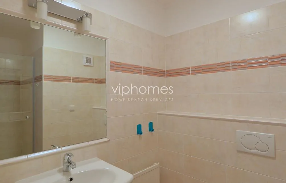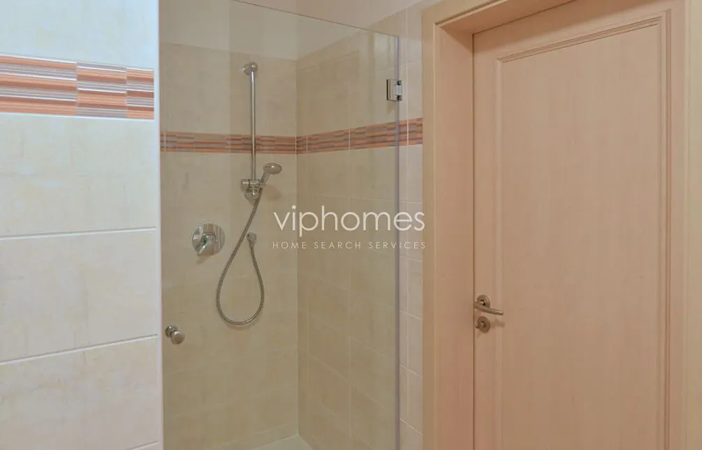 V přízemí vily se nachází vstupní hala, prostorný obývací pokoj s návazností na terasu a zahradu, moderní kuchyň se všemi potřebnými spotřebiči, prádelna, samostatné WC. V patře jsou 4 ložnice - dvě z nich s vlastními koupelnami, dále třetí koupelna a samostatná toaleta.