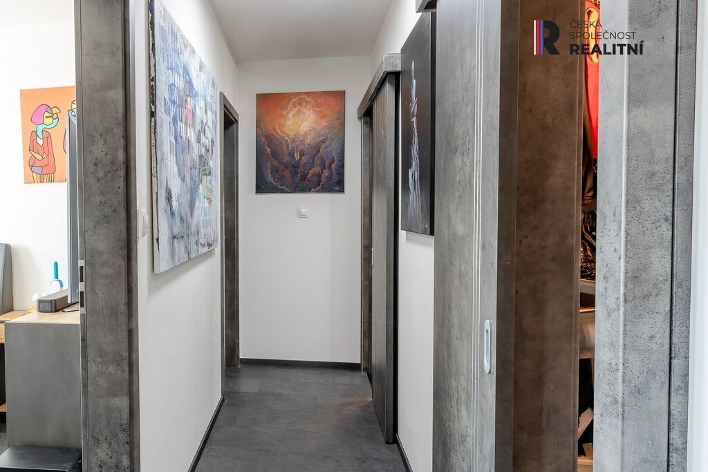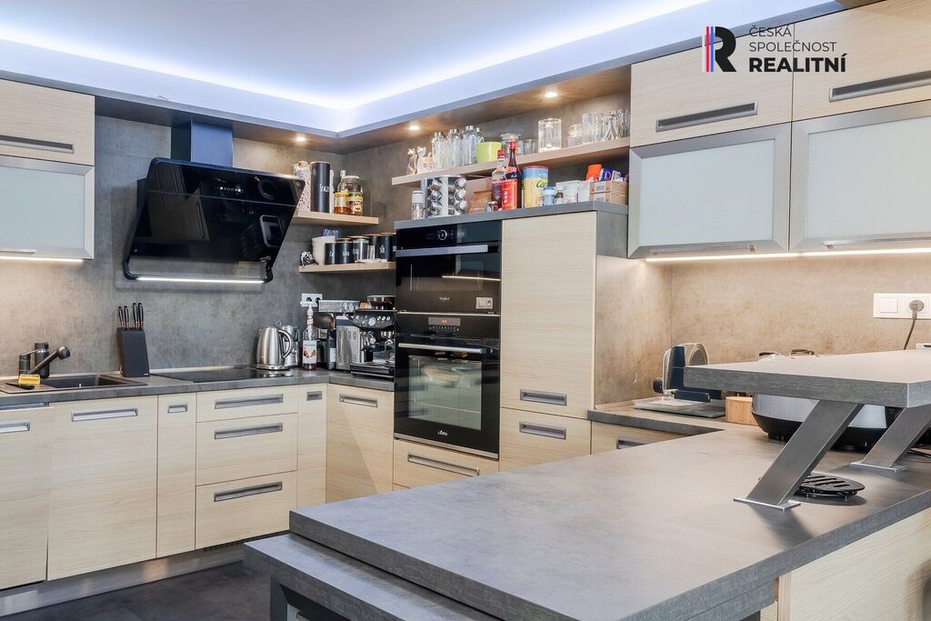 Byt je vybaven moderní kuchyňskou linkou s vestavěnými spotřebiči, vinylovou podlahou s vysokou odolností sladěnou s interiérovými dveřmi a obložkami. Koupelna s vanou i step-in sprchovým koutem. Světelný komfort doplňuje integrovaný systém chytrého osvětlení Philips Hue s možností ovládání nejen vypínači, ale i přiloženými ovladači.