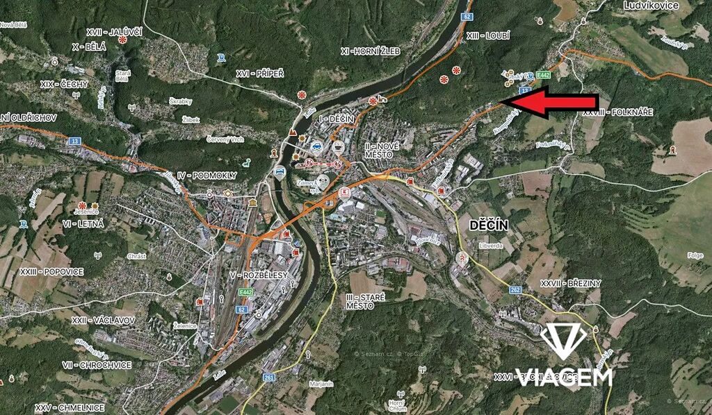 - Lokalita: Děčín, parc. č. 2828/14 (zastavěná plocha a nádvoří), parc. č. 2828/59 (zahrada)