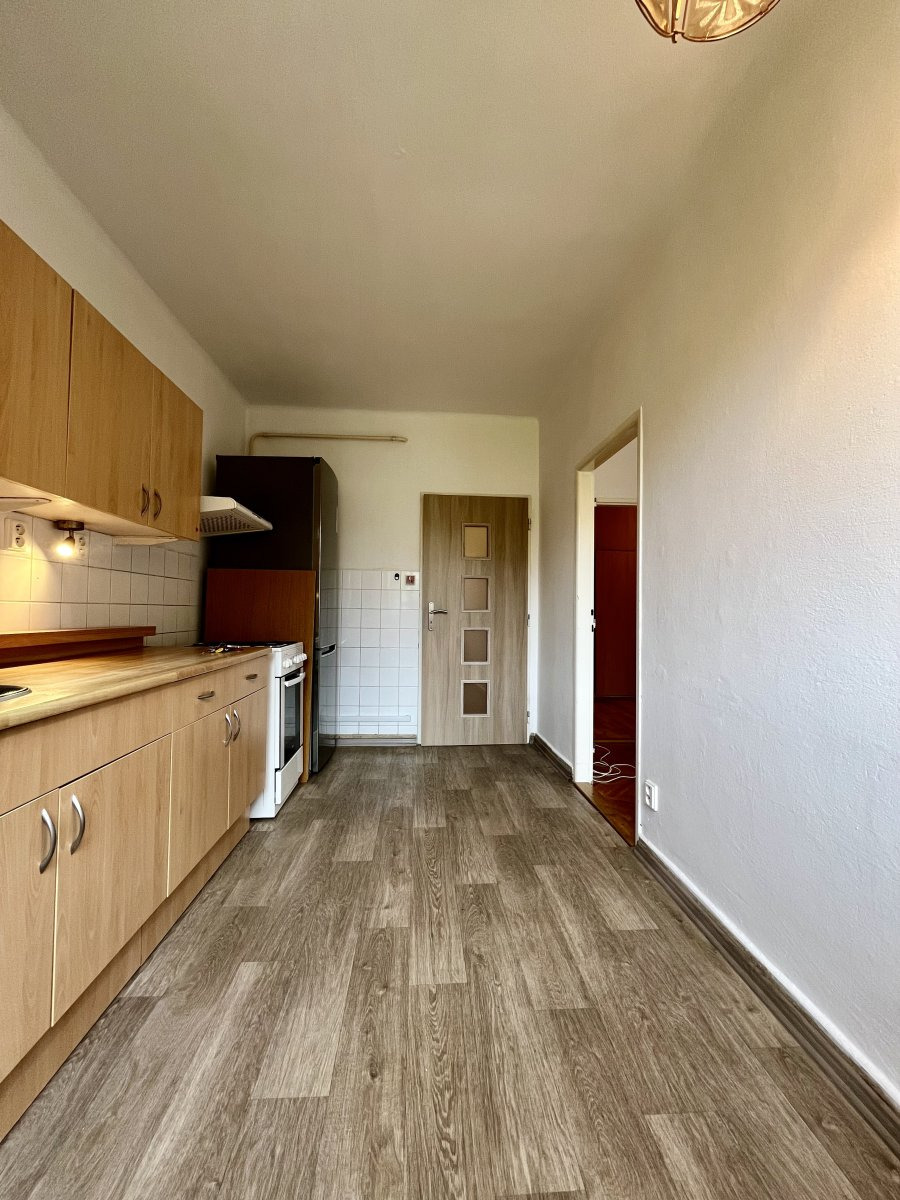 Byt se nabízí částečně vybavený. Kuchyně disponuje lednicí, elektrickou troubou, plynovým sporákem s digestoří a spoustou úložného prostoru a špajzem.