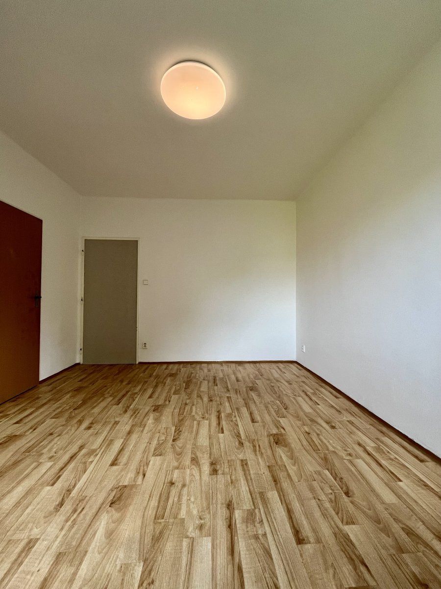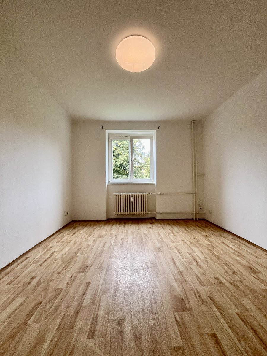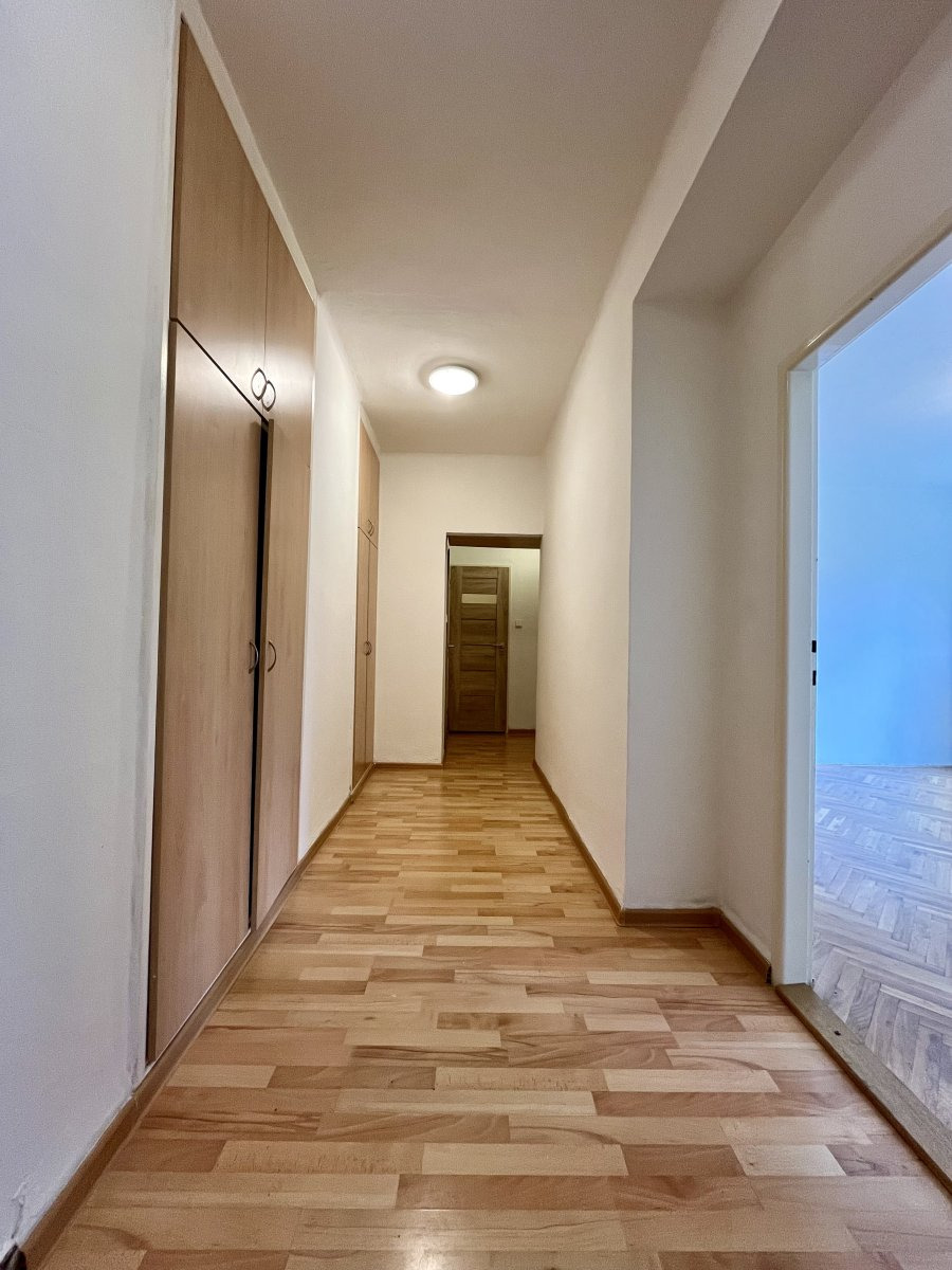 Nabízí jeden neprůchozí pokoj v zadní části bytu. Z průchozího pokoje se dostaneme na balkon a do velké chodby se skříněmi.