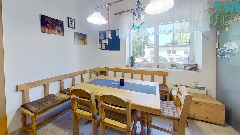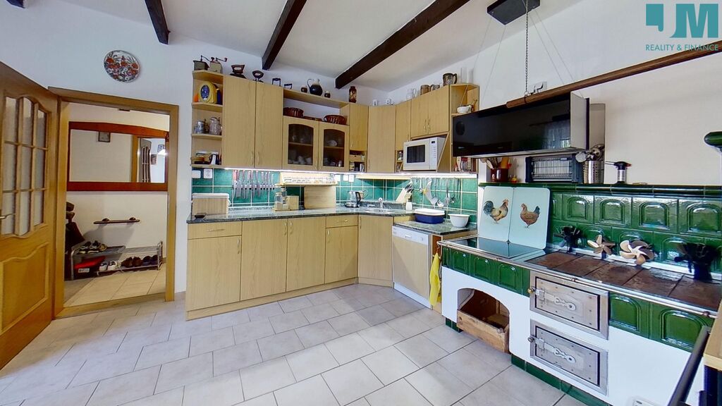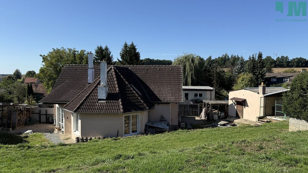 Rád Vám zprostředkuji prodej krásného a prostorného domu v obci Horní Lhotice, která je vzdálena 6km od Náměště nad Oslavou. Dům je zateplený, okna plastová, o vytápění domu je elektrickými přímotopy, případně je možné využít i krb. Do domu je přiveden obecní vodovod a nebo je možné přepnout na vodu ze studny. K domu je také přivedena přípojka plynu. (rozvod plynu v domě není řešen). Na střeše jsou panely na ohřev vody. V přízemí domu naleznete zádveří, velkou kuchyň s kachlovými kamny. Za kuchyní je jedna místnost, z chodby je také vstup do další místnosti, která momentálně slouží jako pracovna. V přízemí domu naleznete také koupelnu s vanou na které je sprchová zástěna, toaleta a prostor pro pračku a sušičku. Z chodby je vstup také do velkého vzdušného obývacího pokoje s krbem a vstupem na terasu. Z obývacího pokoje vedou schody do patra, kde jsou další dva velké pokoje a samostatná toaleta. V patře domu je na chodbě také vstup na půdu, kde je možné využít úložný prostor. V obývacím pokoji je vedle schodiště sauna. Vedle domu je velká garáž, dále na pozemku naleznete také dílnu, velkou skladovací místnost a prostorný kotec pro psy. Na zahradě je možné odpočívat pod velkou pergolou. Dům je zabezpečen osmi kamerami.