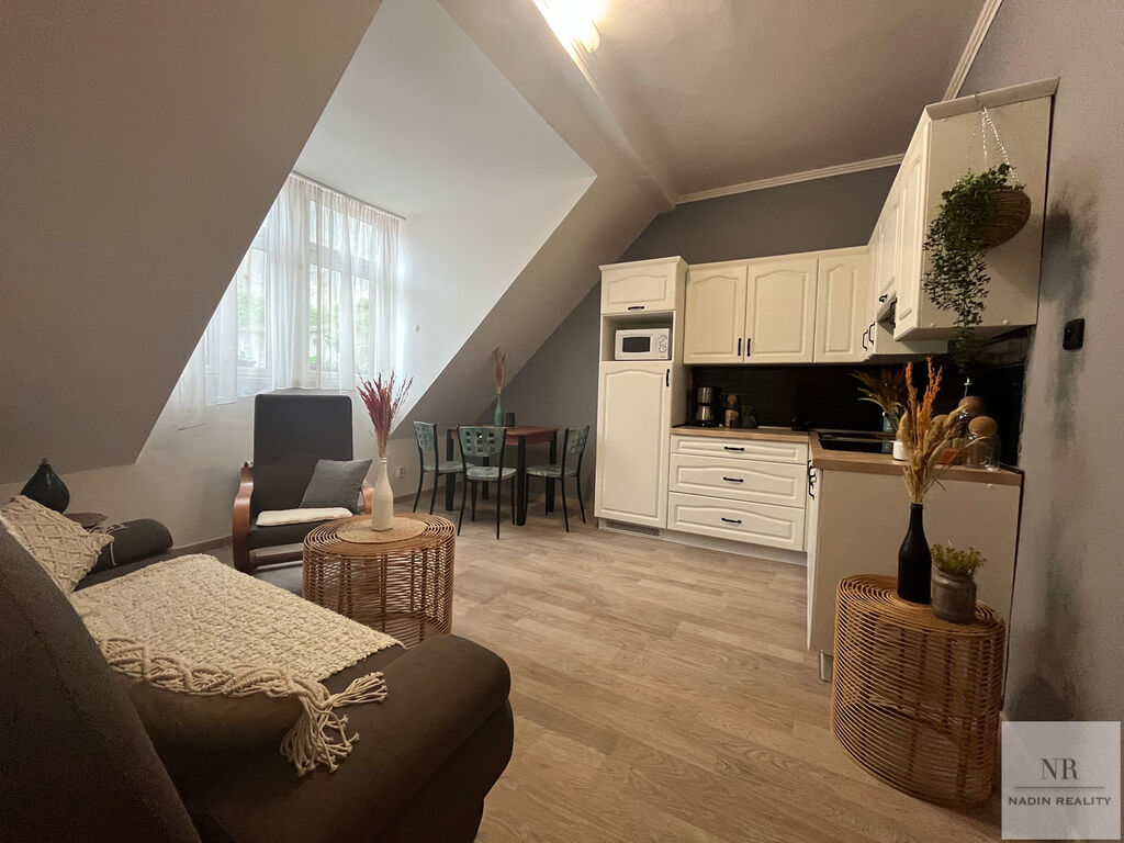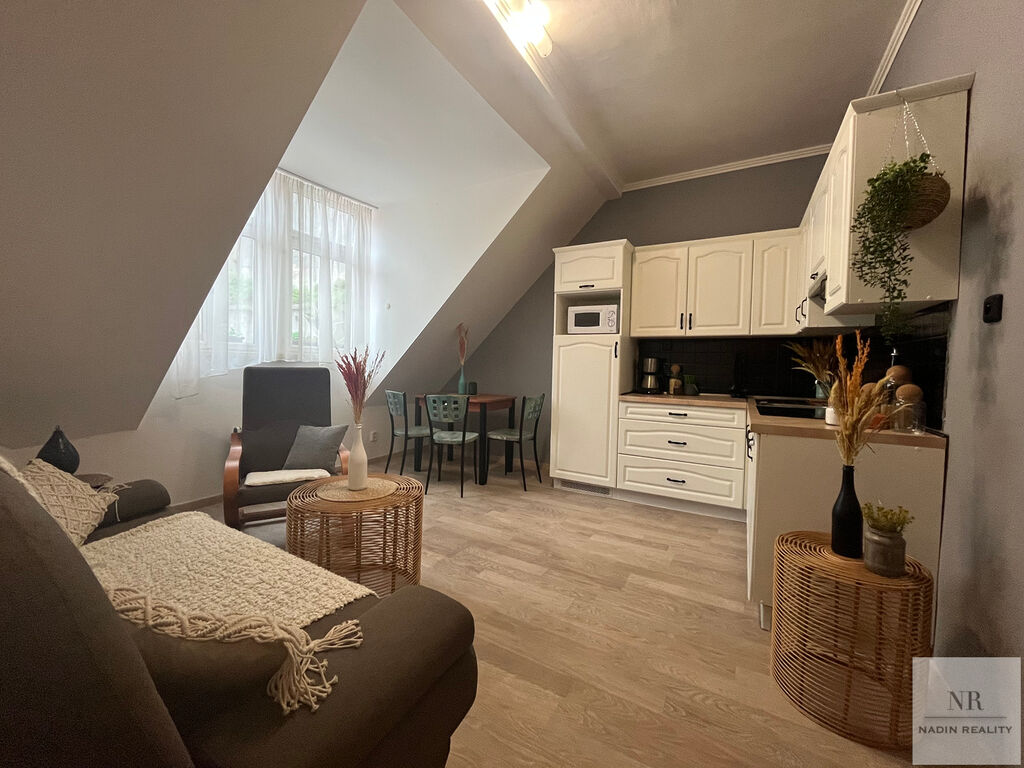 Nabízíme k pronájmu krásný, moderní, a plně zařízený byt 2+kk v samém srdci Karlových Varů, v historickém lázeňském domě. Tento podkrovní byt o velikosti 2+kk nabízí komfortní bydlení s unikátní atmosférou kombinující modernu s artistickými prvky.