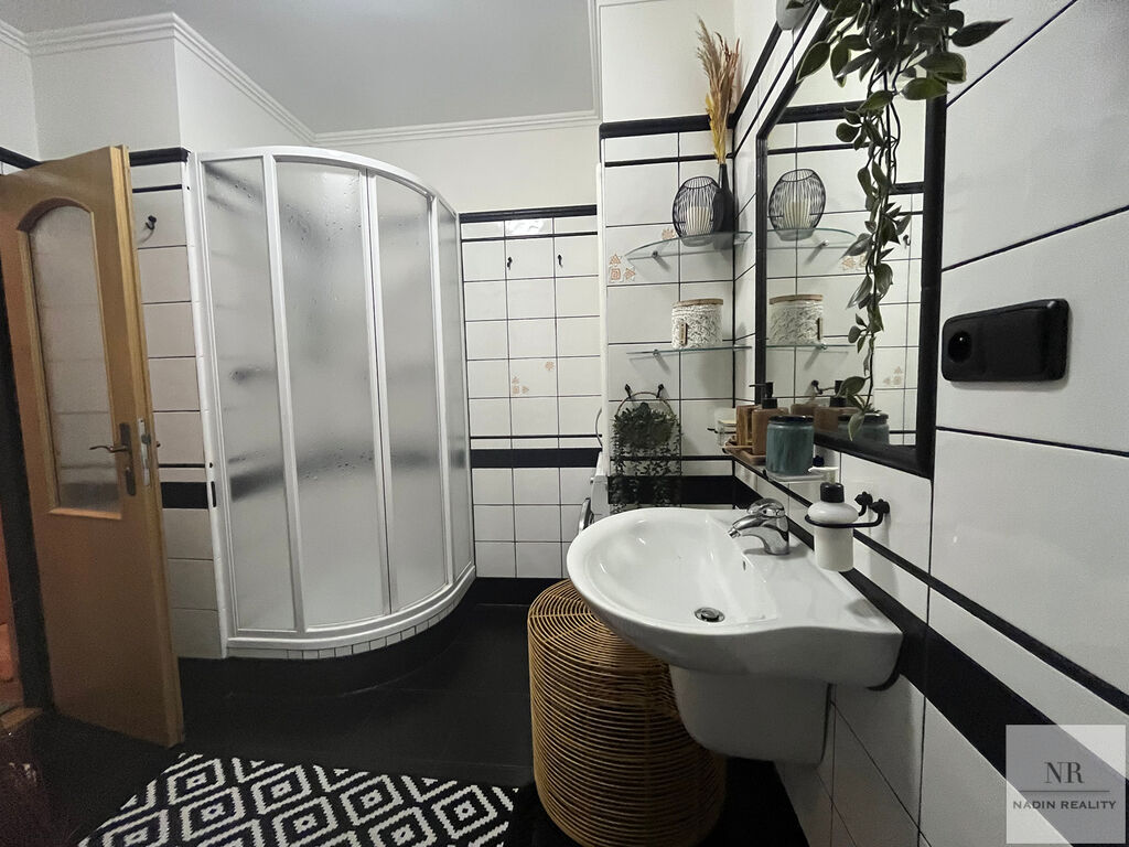 Koupelna je vybavena sprchovým koutem, toaletou, pračkou, fénem, žehličkou a základní drogerií, což zajišťuje možnost nastěhovaní ihned a maximální komfort.