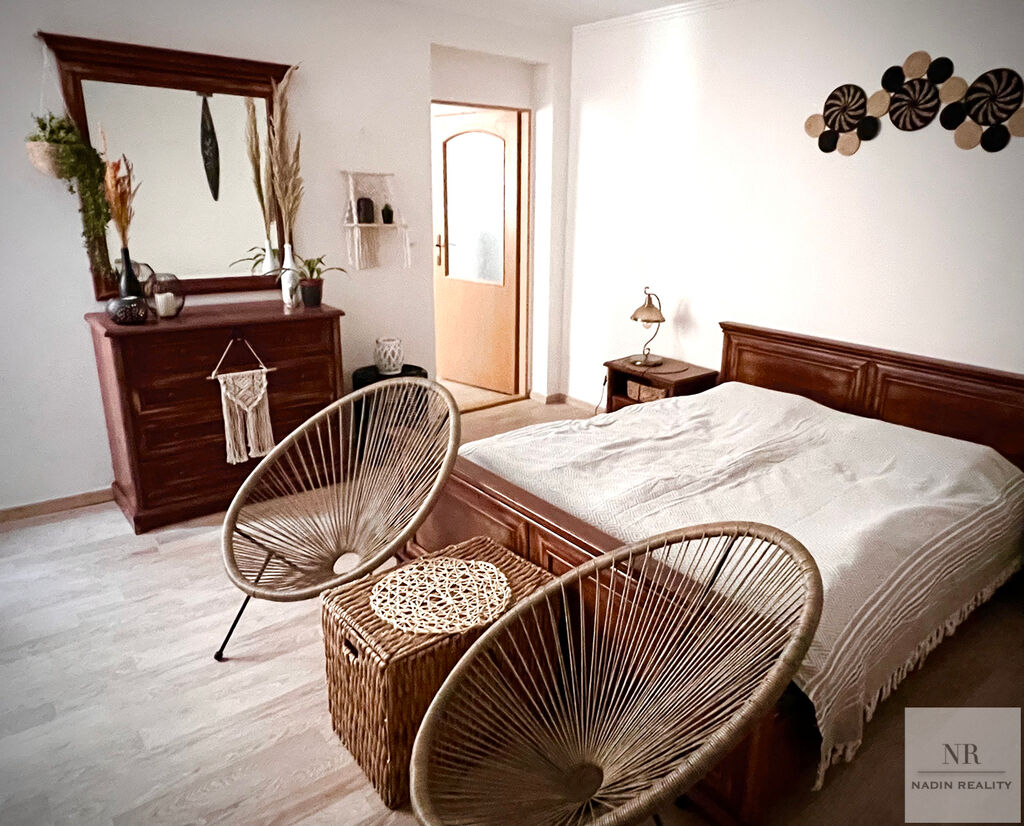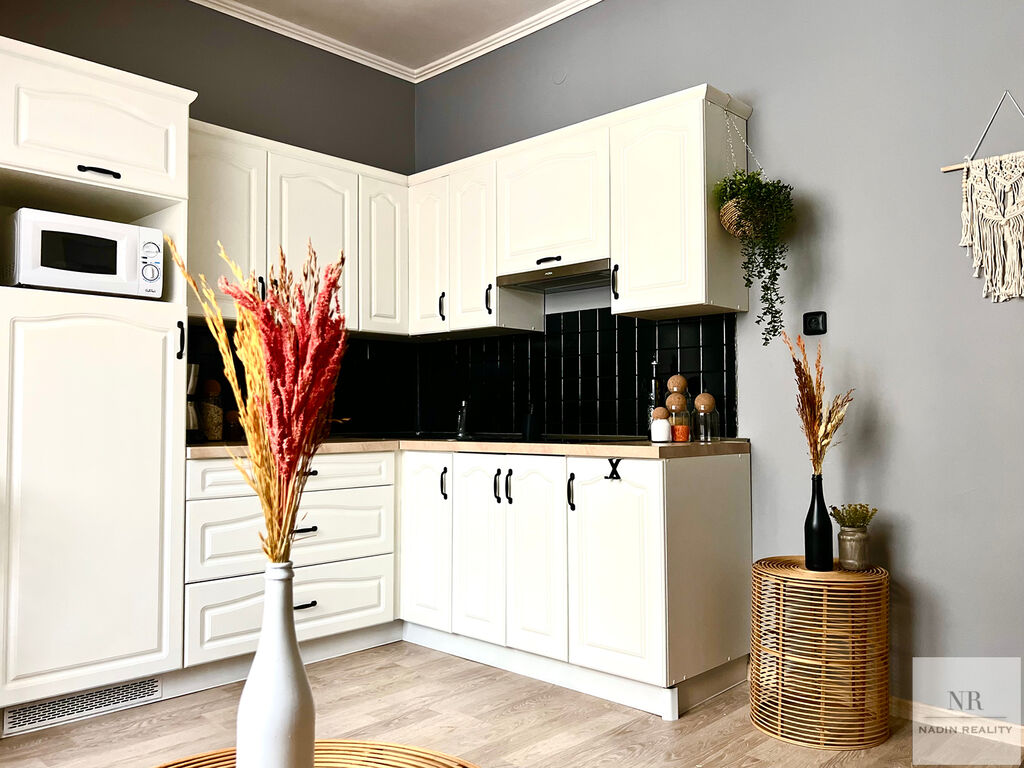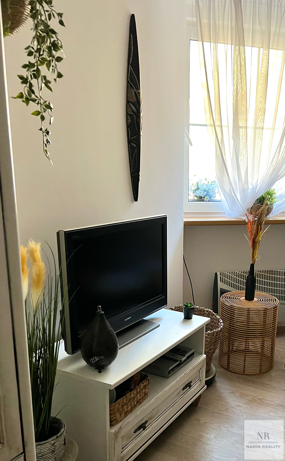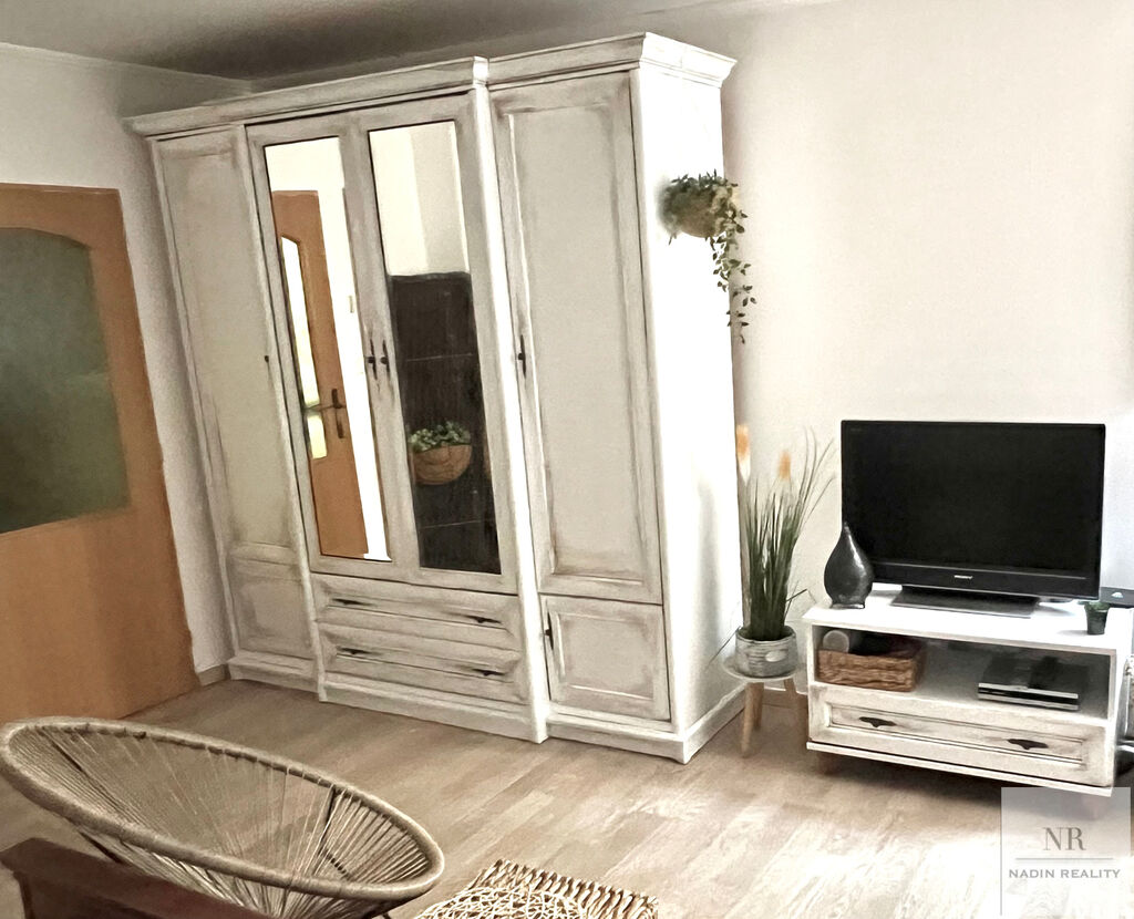 Byt se skládá z plně vybavené kuchyně včetně sklokeramické desky, lednice, mražáku, mikrovlné trouby, kávovaru, rychlovarné konvice, toasteru, topinkovače a kuchyňského robotu. Kuchyně je propojena s obývacím prostorem s rozkládací pohovkou. Druhá část bytu tvoří samostatnou ložnici s příjemným posezením a Smart TV, která nabízí mimo jiné i spoustu úložného prostoru.