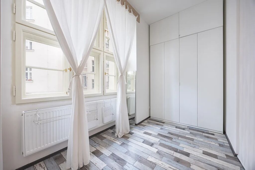 Okna směřují do klidného vnitrobloku s upravenou zahradou, což zajišťuje příjemné a nerušené bydlení.
