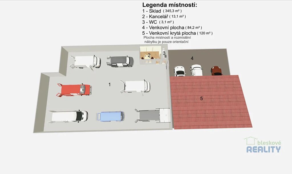 Dovoluji si Vám nabídnout k pronájmu osvětlené výrobně-skladové prostory o celkové výměře 361,5 m², doplněné venkovní plochou o rozloze 204 m², z níž je část o velikosti 120 m² zastřešená.