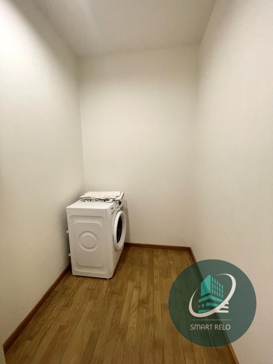 Dispozice bytu tvoří velkorysý obývací prostor s kuchyňským koutem, obývací částí a úložnými prostory. V patře je ložnice s manželskou postelí a nábytkem. K dispozici je také samostatná místnost s pračkou.