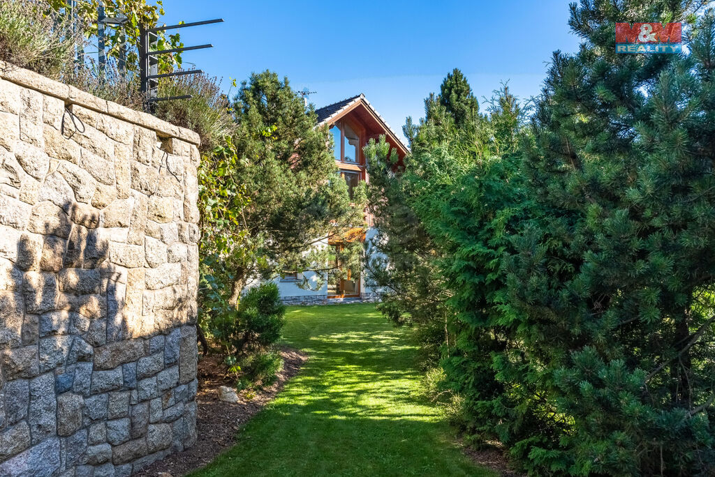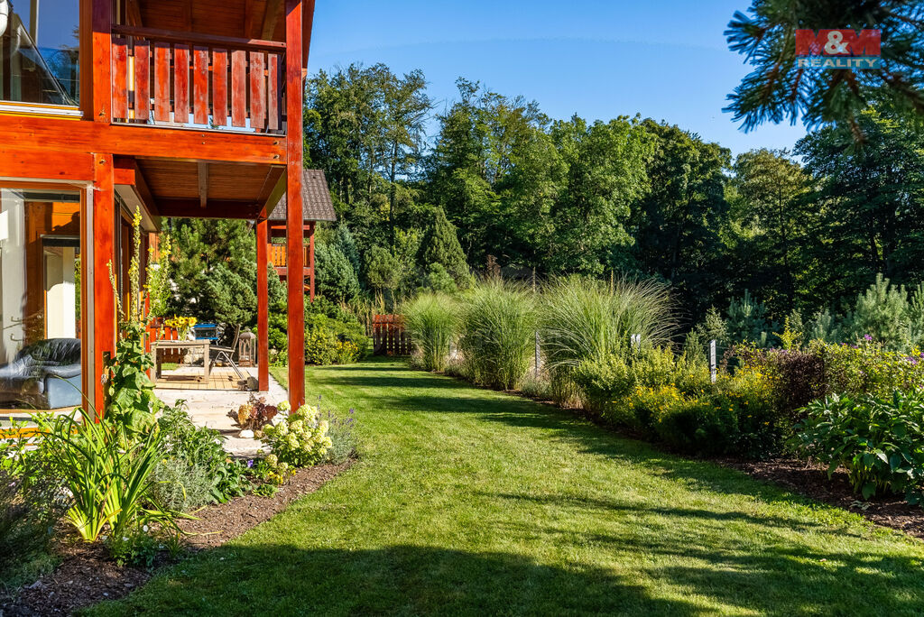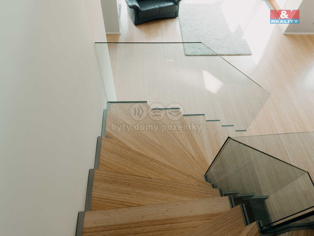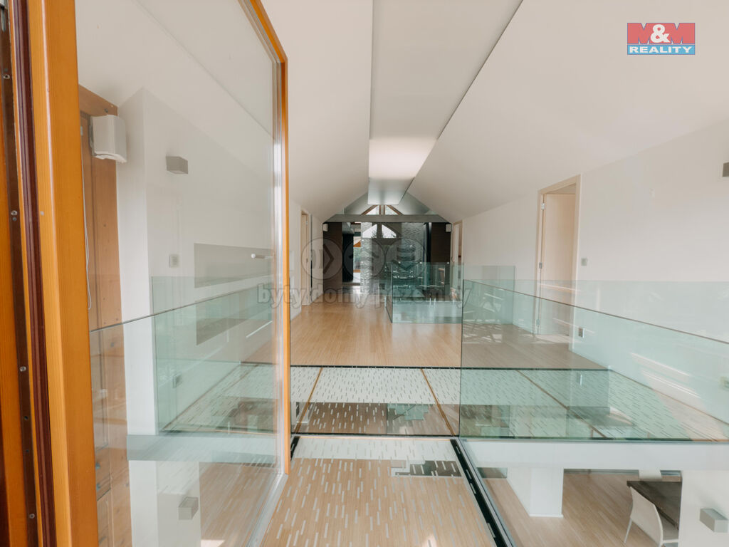 Nabízíme ke koupi výjimečný rodinný dům v alpském stylu, navržený architektem Martinem Sladkým, situovaný v klidné části Jablonce nad Nisou. Tato cihlová stavba se pyšní dvěma nadzemními a jedním podzemním podlažím, poskytující celkem 6 prostorných místností. Dům na pozemku o rozloze 750 m² nabízí užitnou plochu 300 m².Interiér je navržen s důrazem na přirozené světlo, což podtrhují celoskleněná zábradlí a prosklené podlahy. Přízemí slouží jako společenská zóna s obývacím pokojem, kuchyní, pracovnou a moderní koupelnou. Horní patro je určeno pro soukromý relax s ložnicí a dvěma pokoji s vlastními koupelnami. Suterén nabízí technické zázemí a úložné prostory. Terasa s výhledem do zeleně dotváří harmonické propojení s přírodou. Venkovní žaluzie zajišťují optimální osvětlení. K domu náleží zateplená dvojgaráž a prostor na kola a lyže. Dům je v perfektním stavu a čeká na nové majitele, kteří ocení jeho jedinečnost a kvalitu. Více informací sdělí makléř na prohlídce.