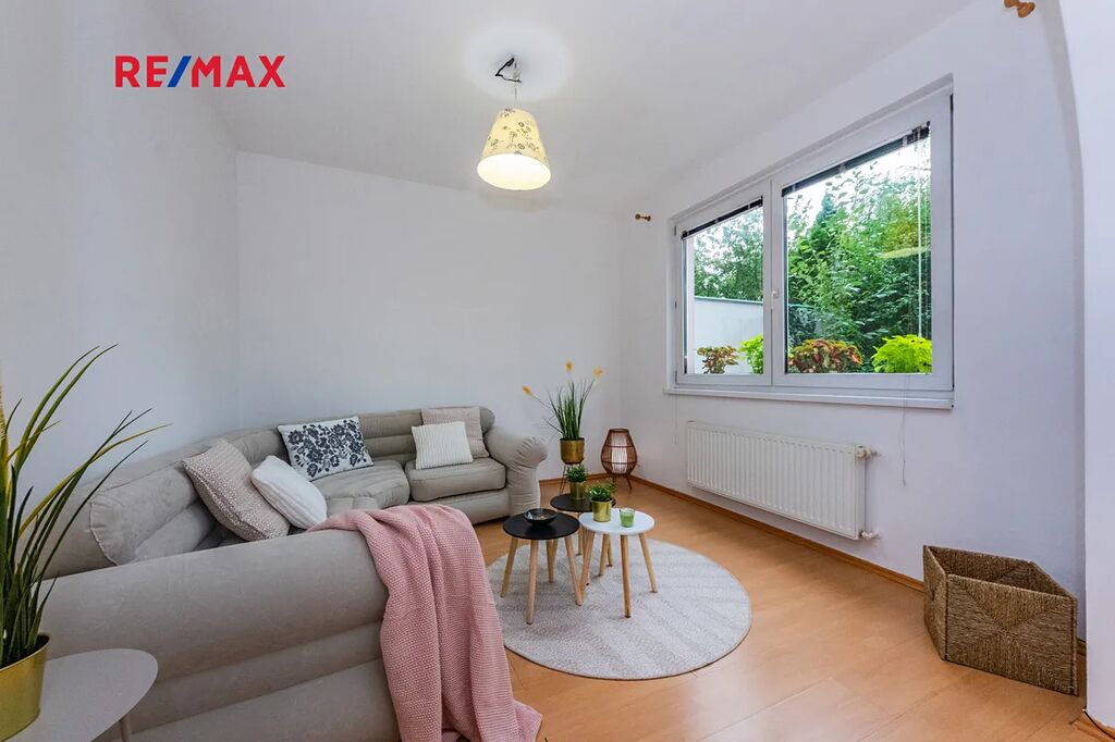 Srdcem bytu je prostorný obývací pokoj s kuchyňským koutem (26,64 m²), který je propojený se zahradou. Tím vzniká přirozené propojení interiéru s exteriérem, ideální pro odpočinek, letní večery u grilu i každodenní kontakt s přírodou.