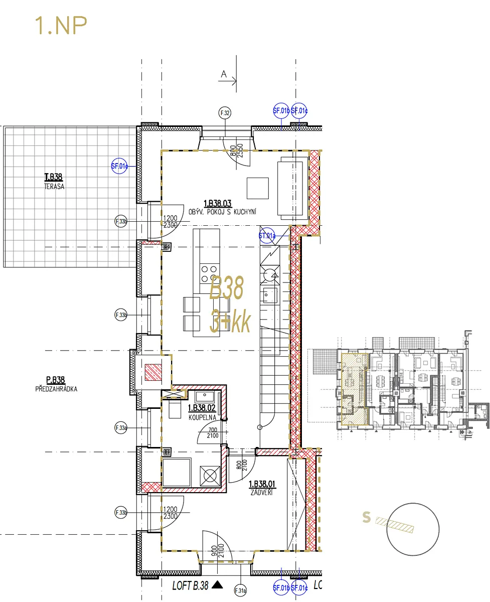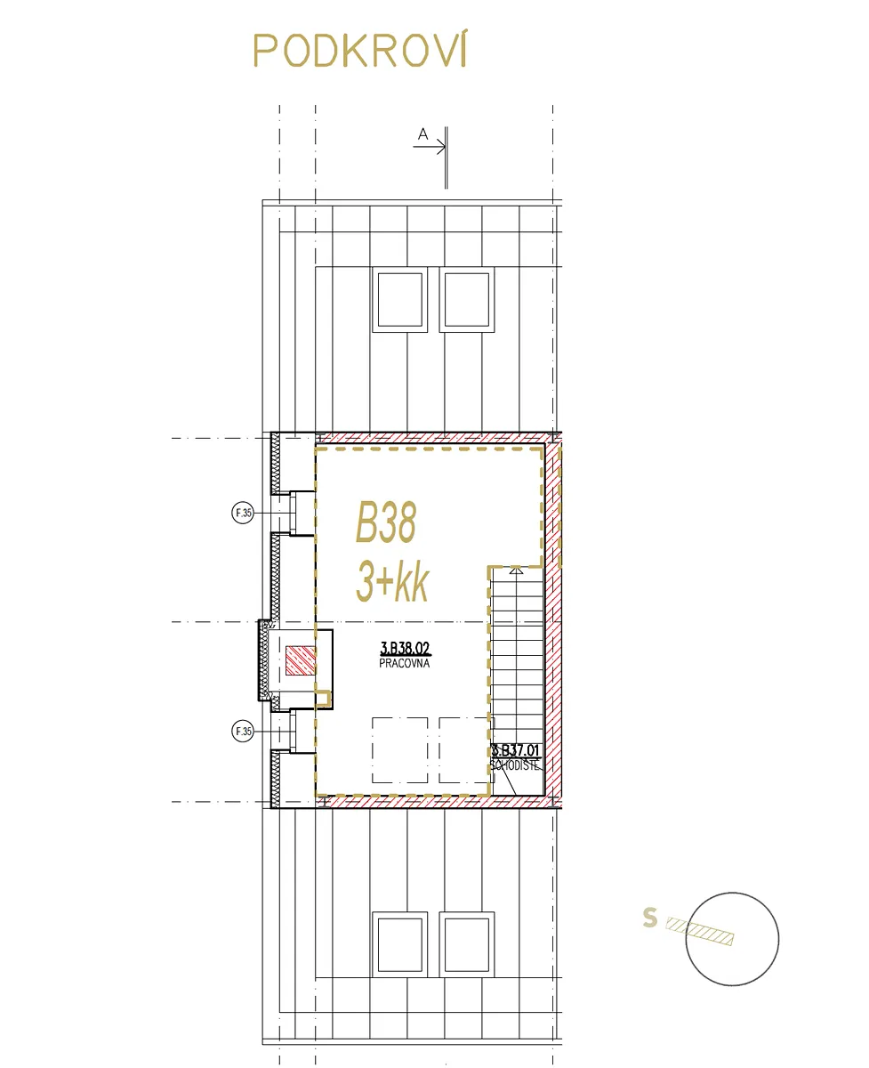 Nabízíme k prodeji exkluzivní byt B38 o dispozici 3+kk a celkové výměře 103,6 m² dle NOZ (čistá užitná plocha 100,2 m²). Jedná se o 3 podlažní mezonetový byt s moderní galerií, který je orientován převážně na severozápad. Byt má vlastní vchod a náleží mu velkorysá terasa 17m2 s výhledem do zeleně a předzahradká o velikosti 47m2. Cena zahrnuje i 2 parkovací stání (kryté přímo u vchodu do bytu a nekryté stání na hlavním parkovišti) – vše je uvedeno včetně DPH.