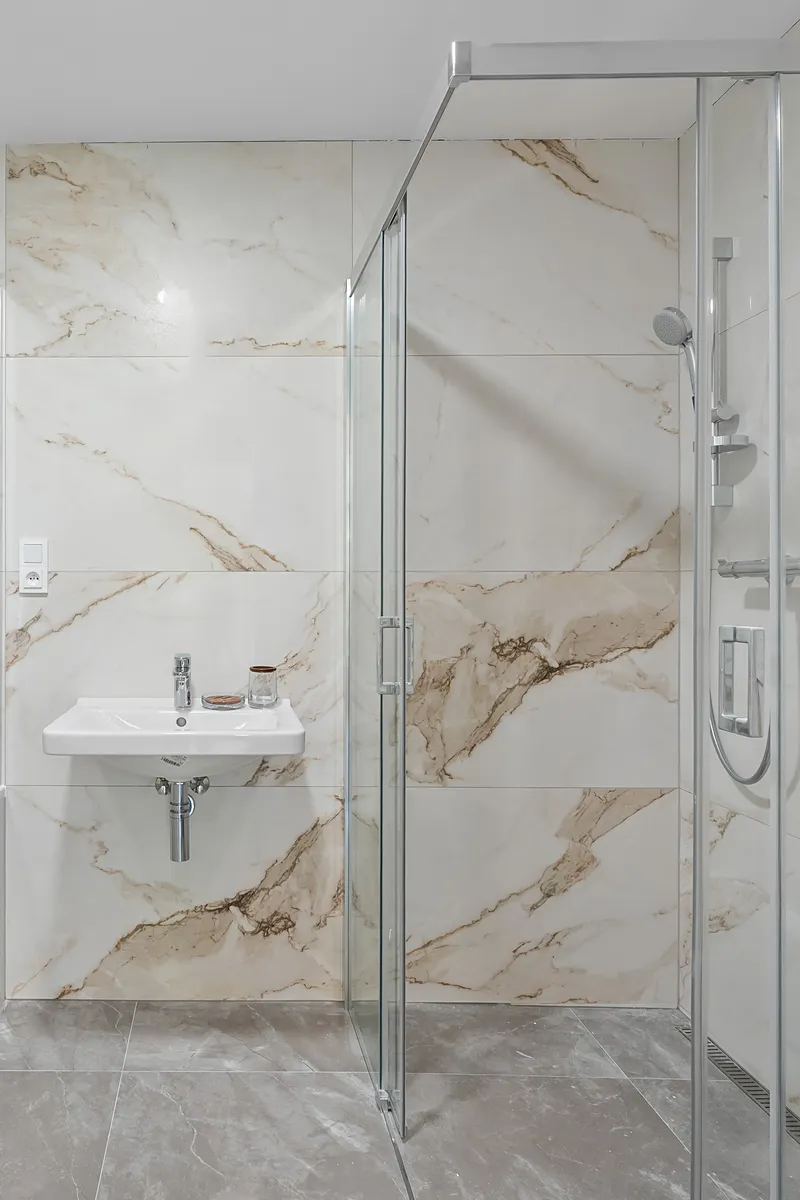 Všechny byty v projektu mají vysoký standard vybavení: kvalitní vinylové podlahy s akustickou podložkou, teplovodní podlahové vytápění, francouzská okna s izolačním trojsklem, moderní sanita značky Grohe, velkoformátové obklady v koupelnách atd.