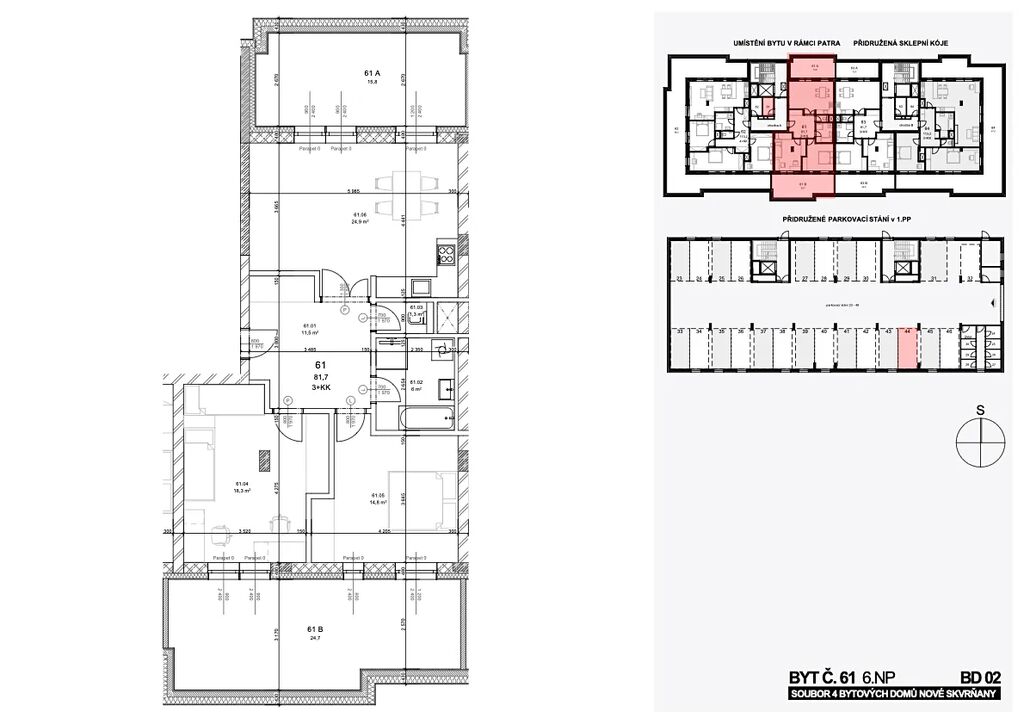 K bytu je možno dokoupit parkovací místo umístěné v prvním podzemním podlaží.