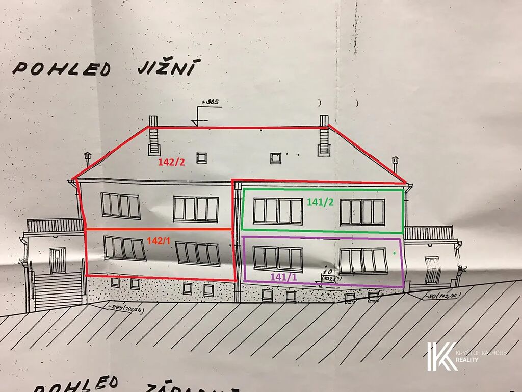 Nabízený bytový dům č.p. 142 je kompletně podsklepený a sestává ze dvou samostatných bytových jednotek, č. 142/1 a 142/2, umístěných na prvním a druhém podlaží. K bytové jednotce 142/2 dále náleží půdní prostor nad celým bytovým domem, tj. nad č.p. 141 a 142. To znamená možnost zásadního rozšíření obytné plochy a využití plného potenciálu nemovitosti.