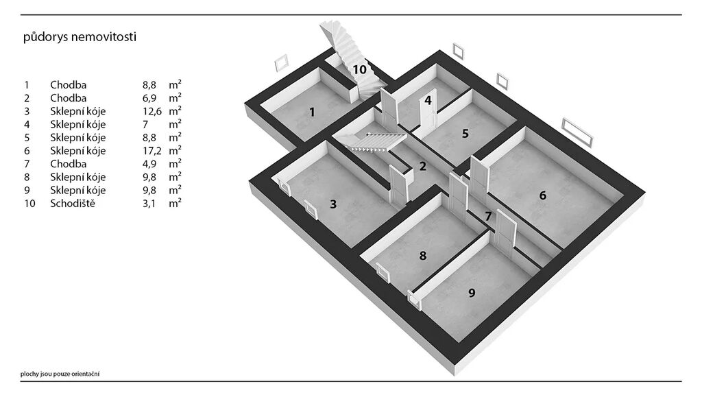 3. NP: půdní prostor, 186,5 m2